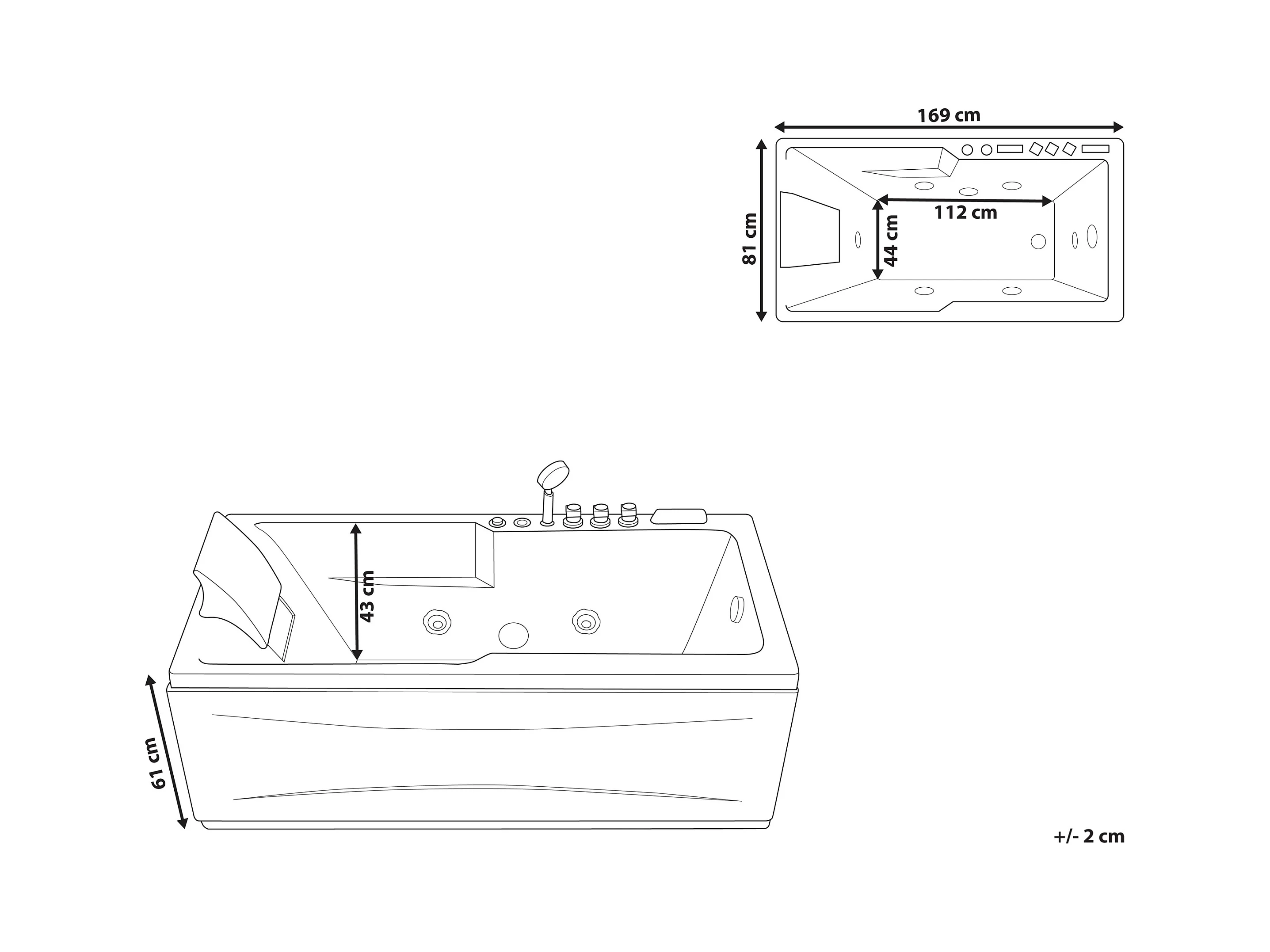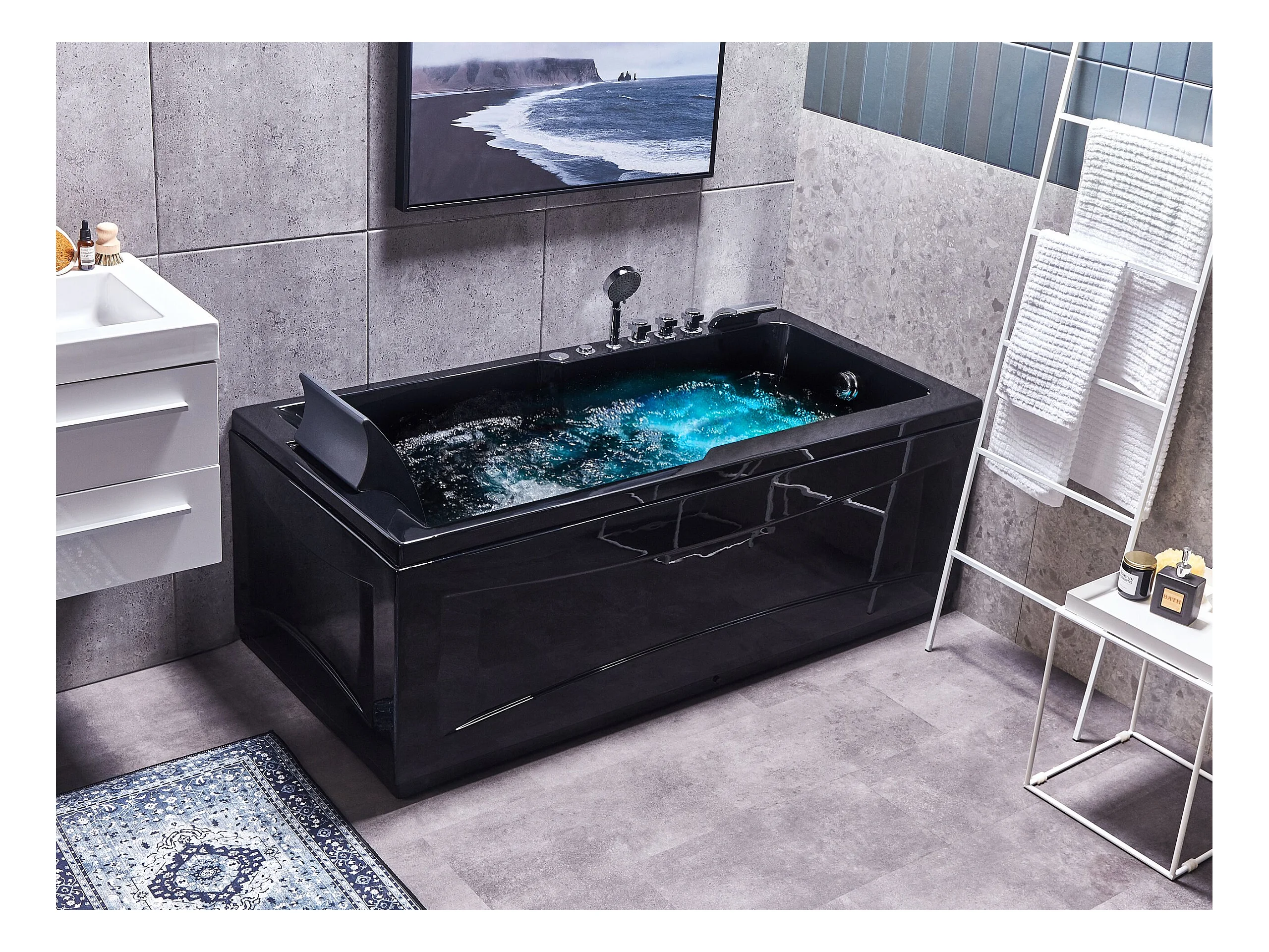 Baignoire d'angle à remous avec LED ARTEMISA Côté droite 170 x 80 cm Noir