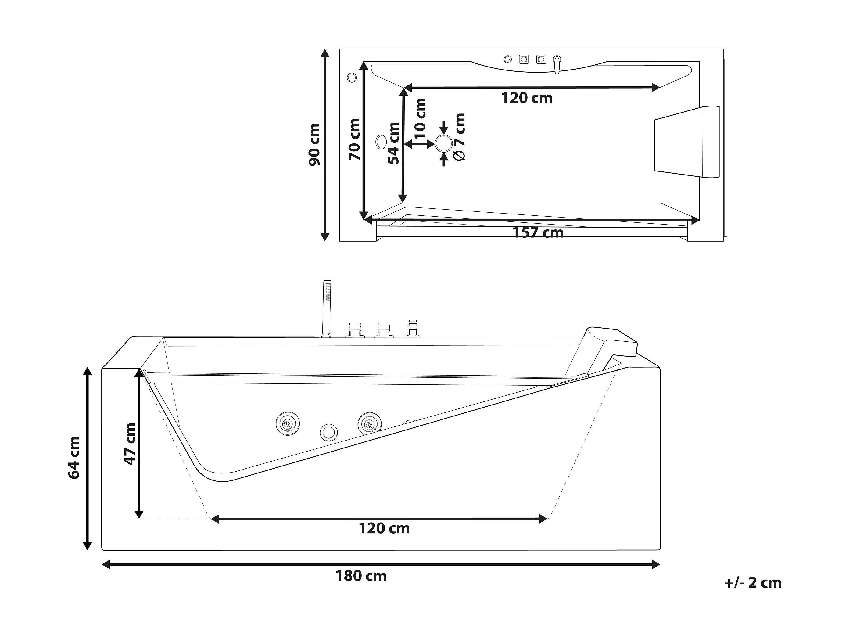 Baignoire d'angle à remous avec LED MARQUIS 180 x 90 cm Blanc