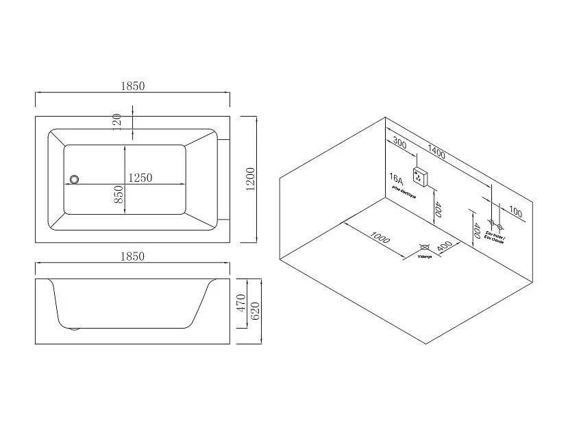 BAIGNOIRE BALNEO LORD DUO 2 PLACES ARCHIPEL® 185X120 - DROITE