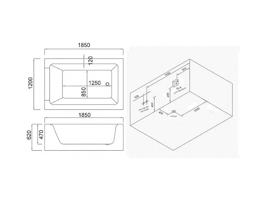 BAIGNOIRE BALNEO LORD DUO BLANC 2 PLACES ARCHIPEL® 185X120 - GAUCHE