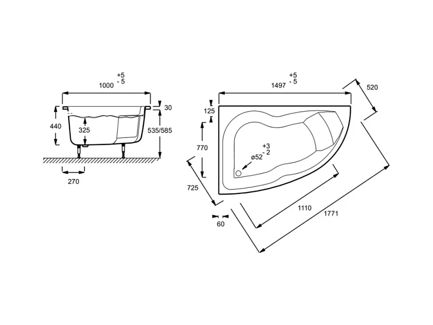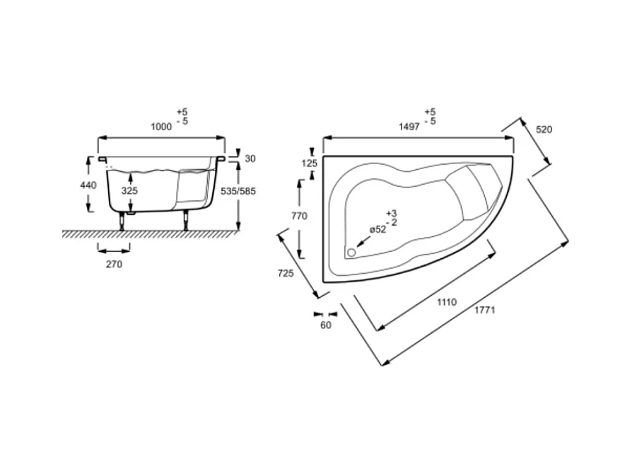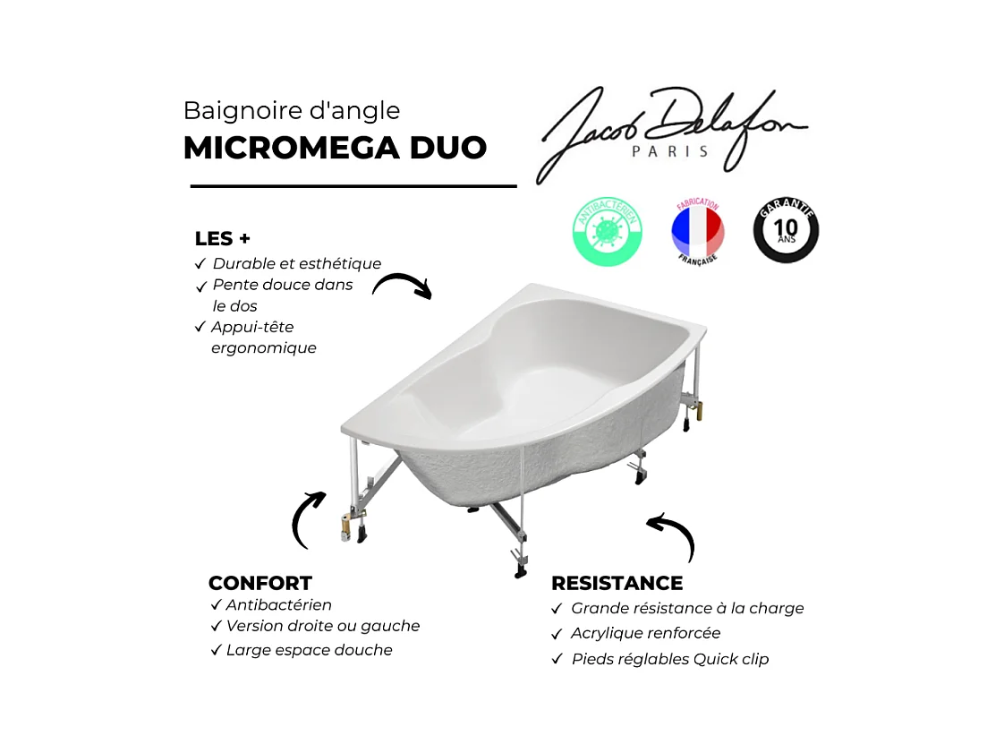 Baignoire d'angle 150 X 100 JACOB DELAFON Microméga Duo version gauche