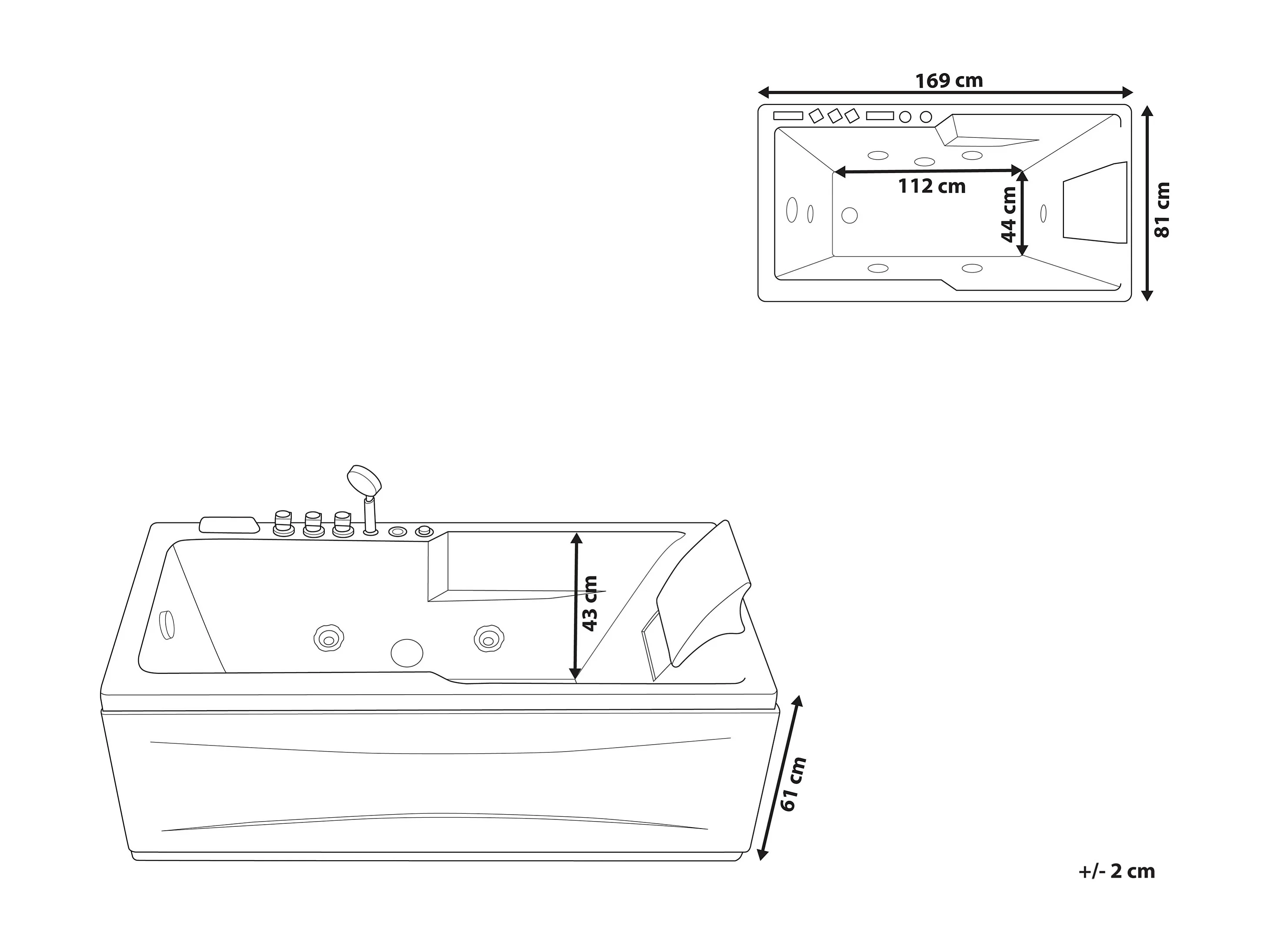 Baignoire d'angle à remous avec LED ARTEMISA Côté droit 170 x 80 cm Noir