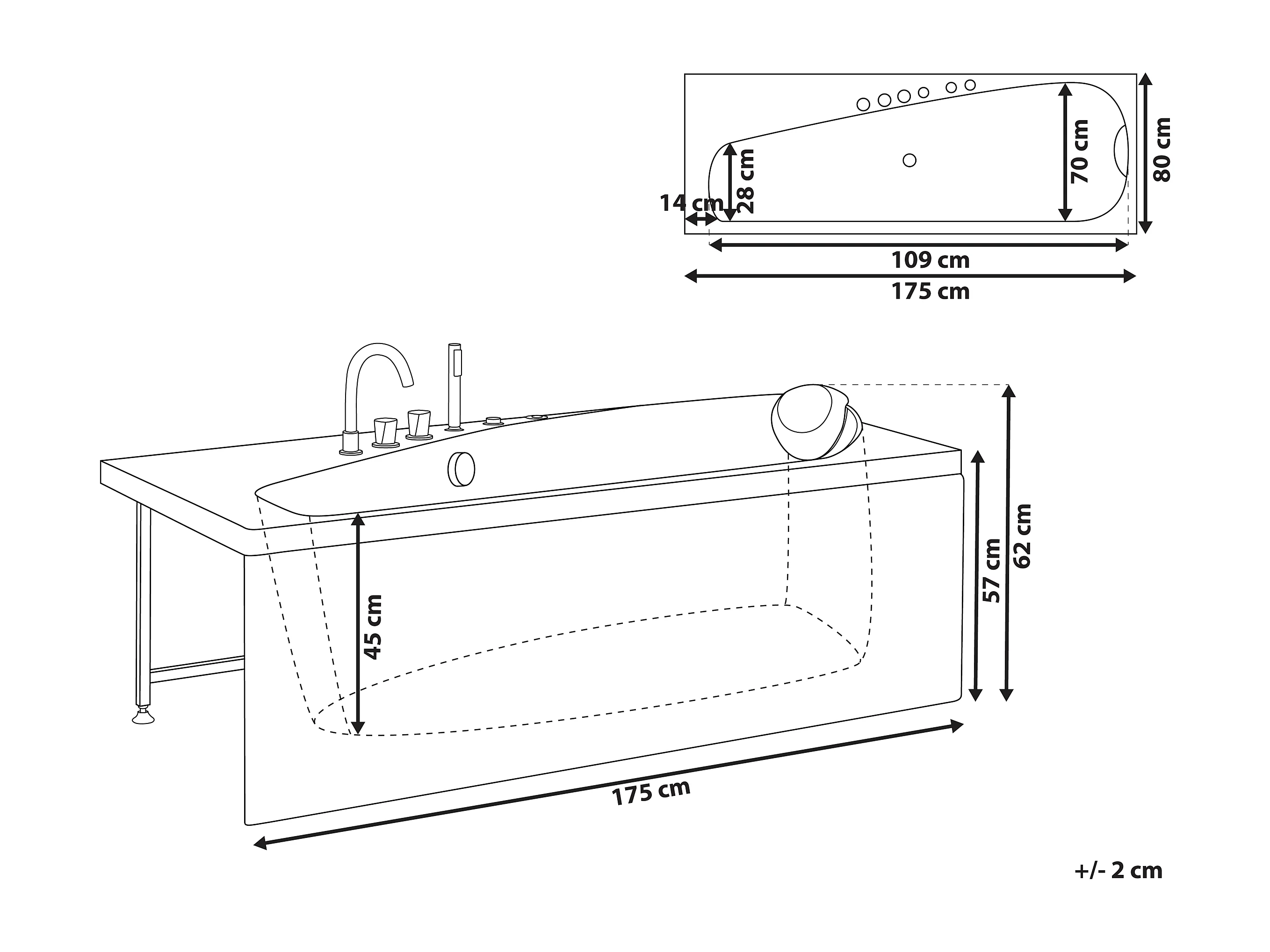 Baignoire d'angle à remous avec LED CAURA Côté droit 175 x 80 cm Blanc
