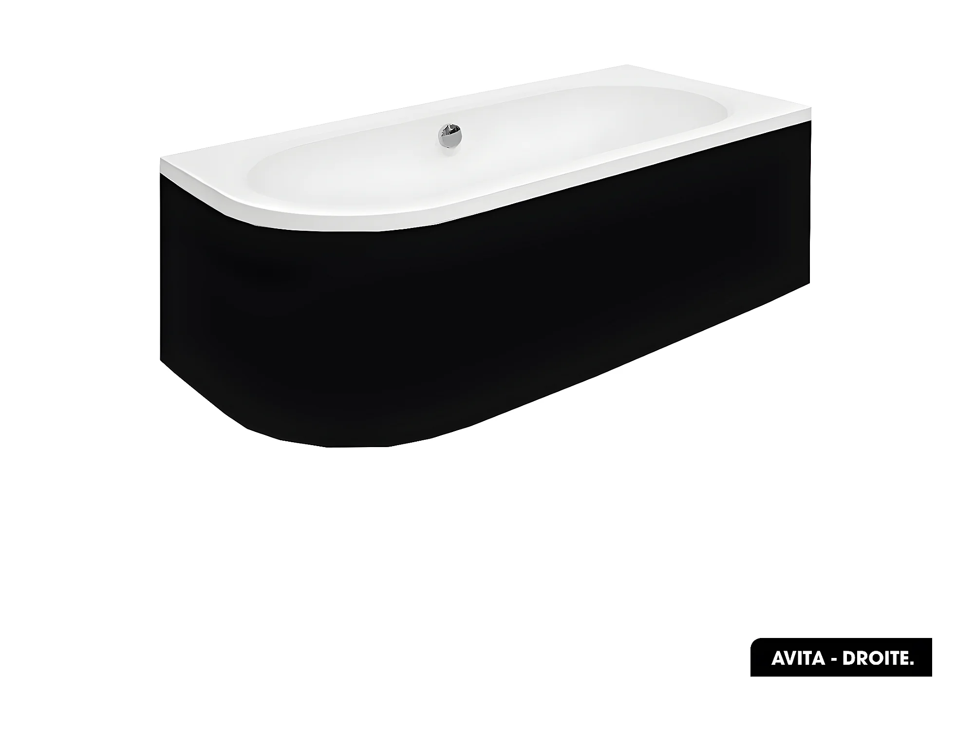 Baignoire d'angle - avec tablier noir Mat et repose tête offert | AVITA | 150 x 75 cm - Droite
