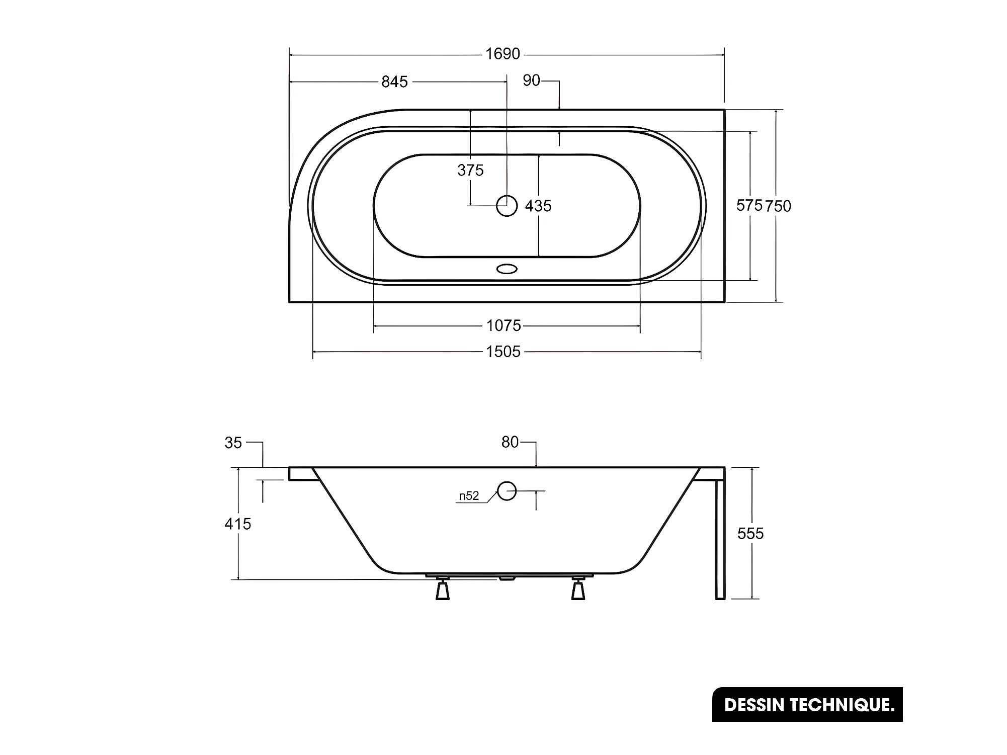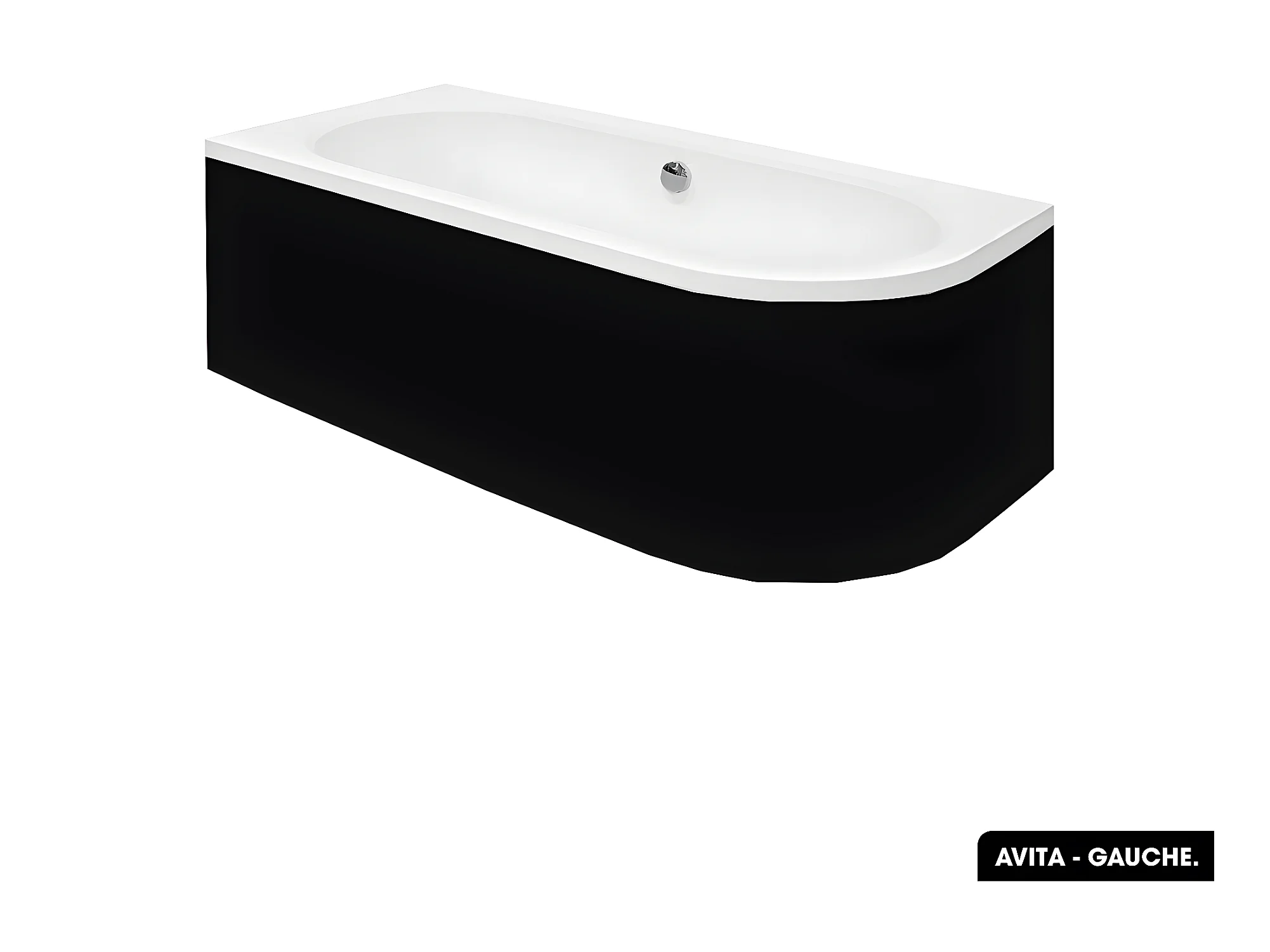 Baignoire d'angle - avec tablier noir Mat et repose tête offert | AVITA | 170 x 75 cm - Gauche