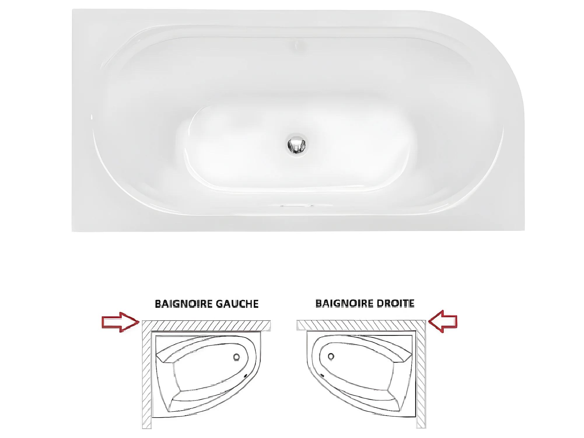 Baignoire d'angle Blanc + Siphon Blanc et Vidage inclus + Repose tête - AVITA S CLASSE - GAUCHE - 150 x 75 cm