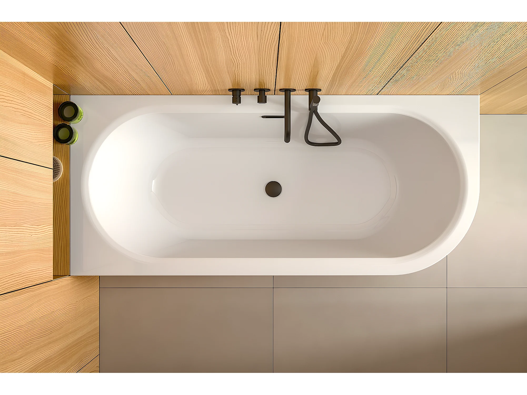 Baignoire d'angle Blanc + Siphon Chrome et Vidage inclus + Repose tête - AVITA S CLASSE - GAUCHE - 150 x 75 cm