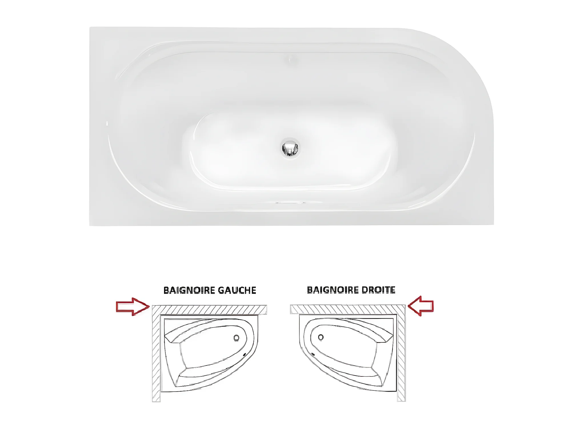 Baignoire d'angle Blanc + Siphon Doré et Vidage inclus + Repose tête - AVITA S CLASSE - GAUCHE - 170 x 75 cm