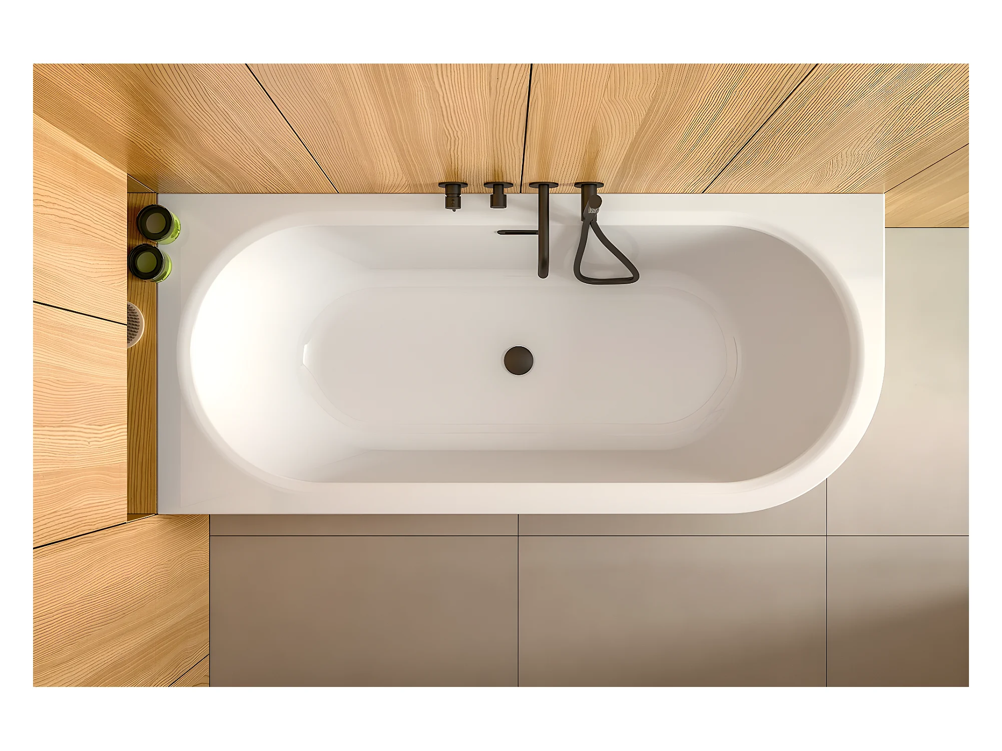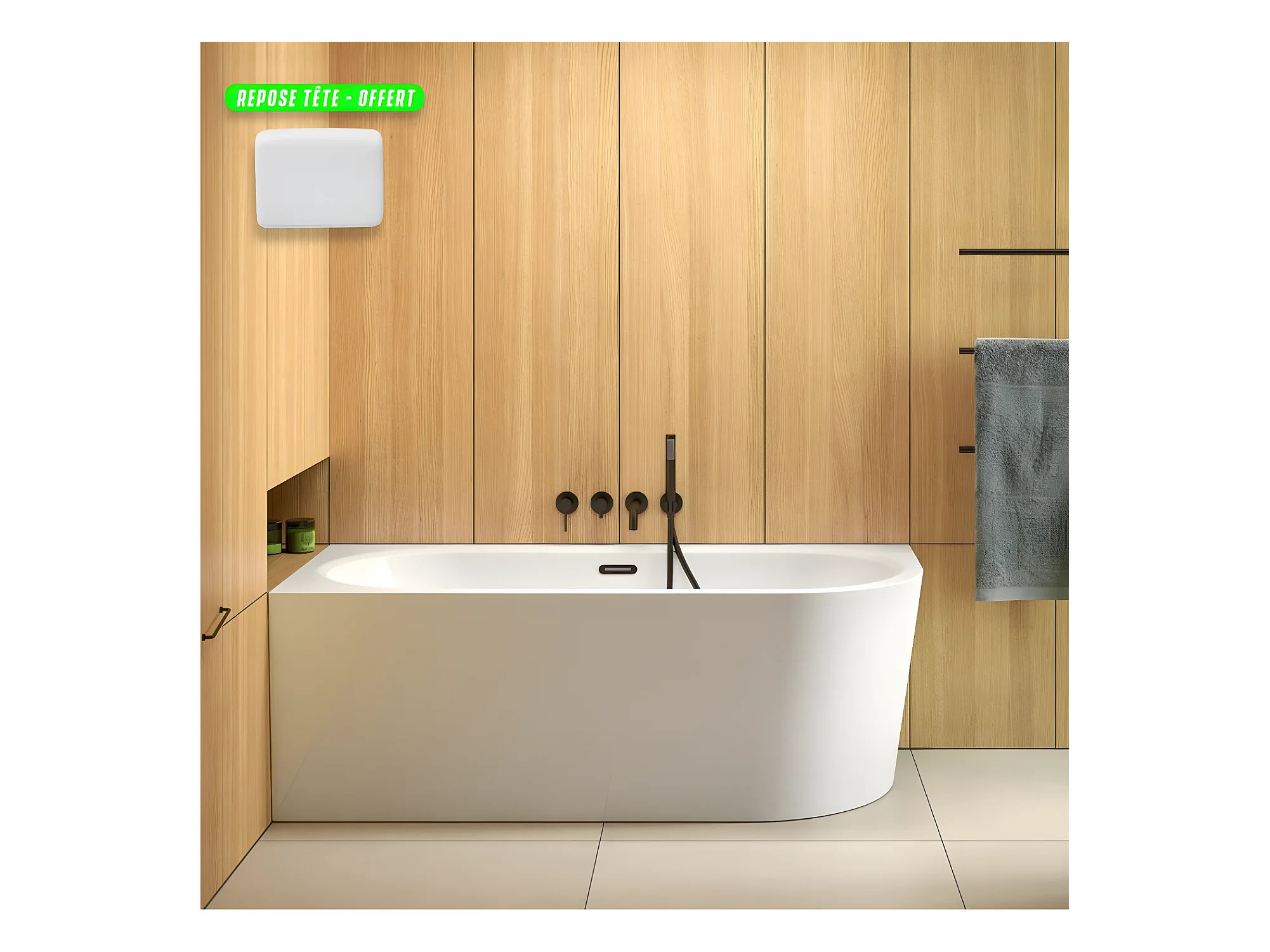 Baignoire d'angle Blanc + Siphon Graphite et Vidage inclus + Repose tête - AVITA S CLASSE - GAUCHE - 150 x 75 cm
