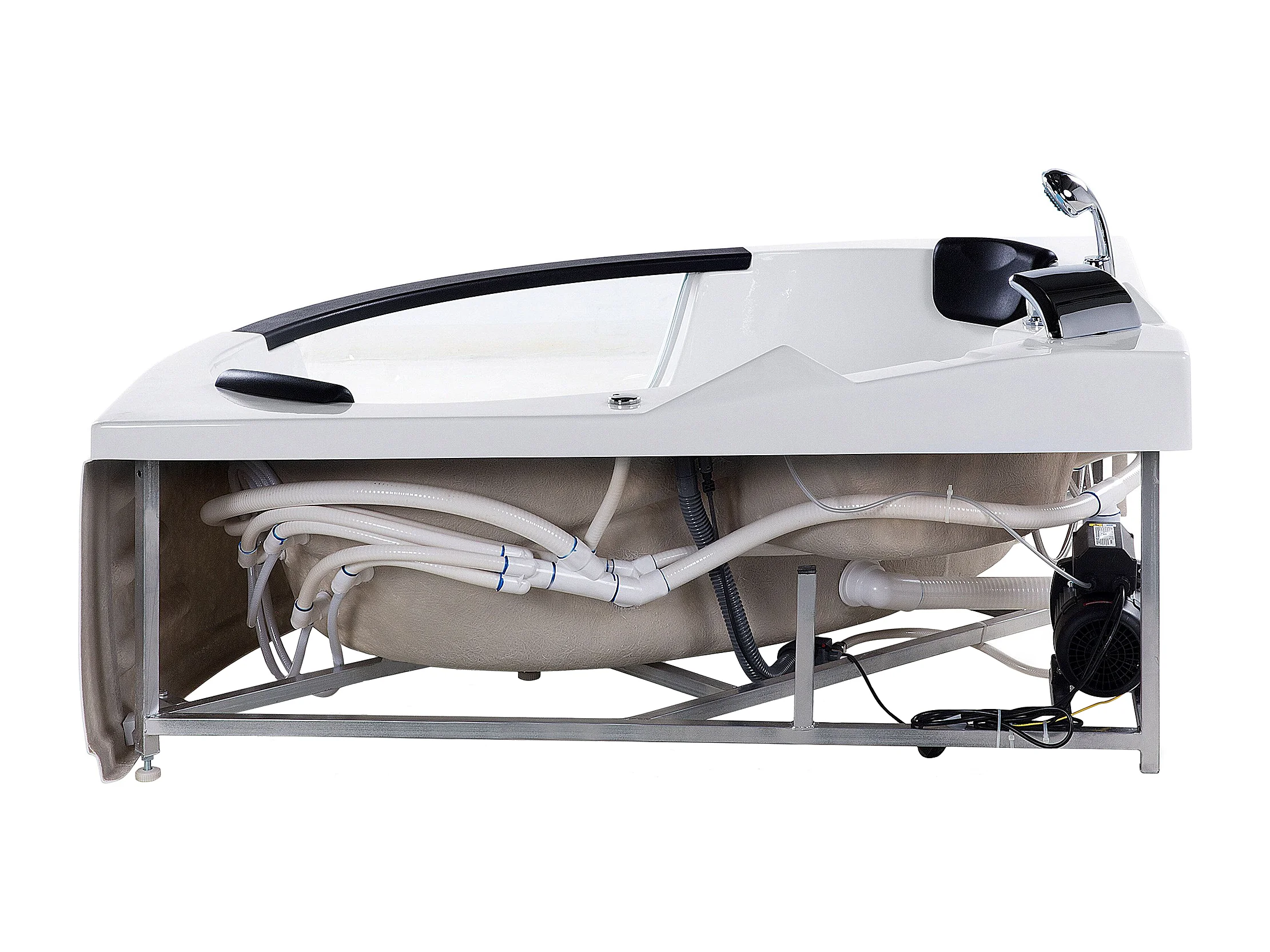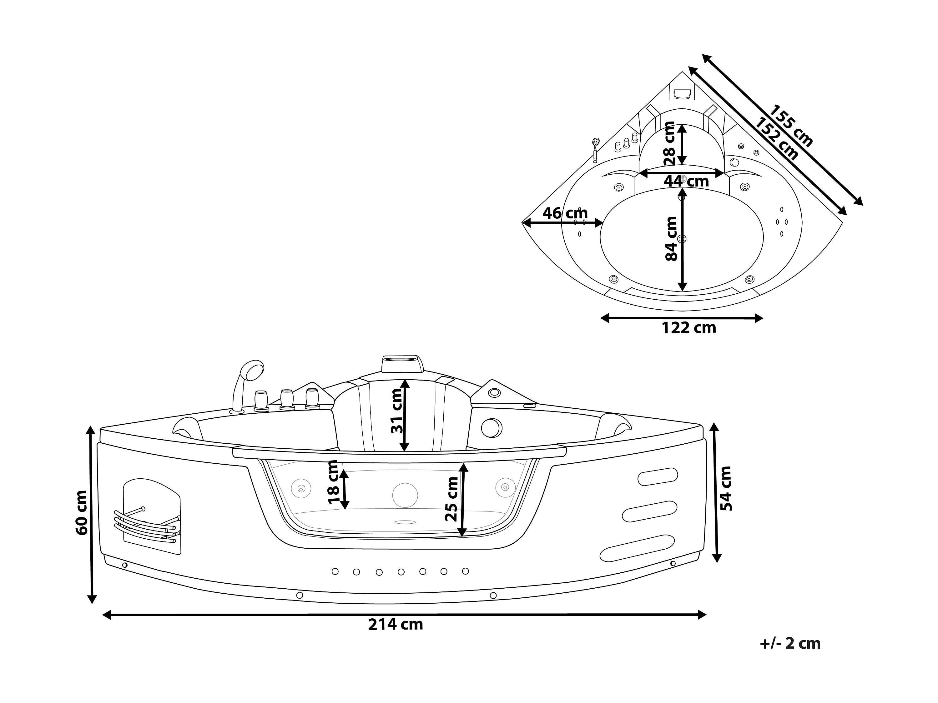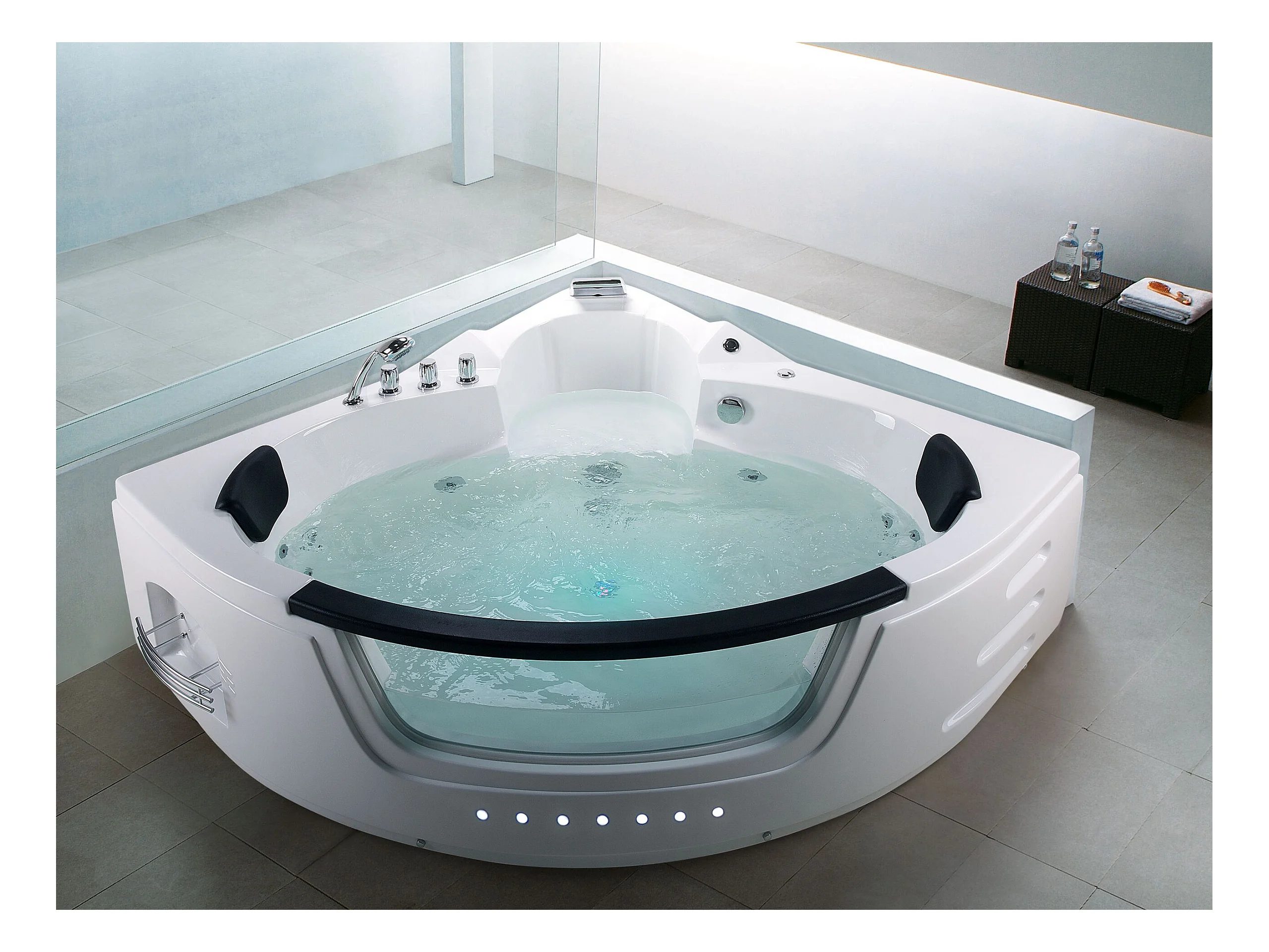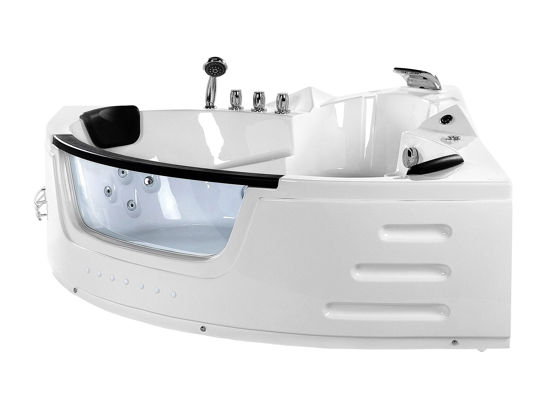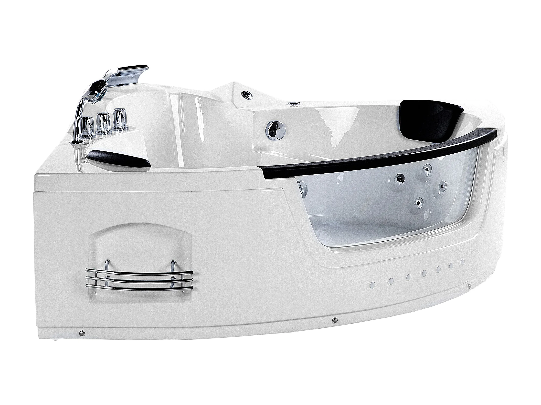Baignoire d'angle à remous avec LED MARTINICA 214 x 155 cm Blanc