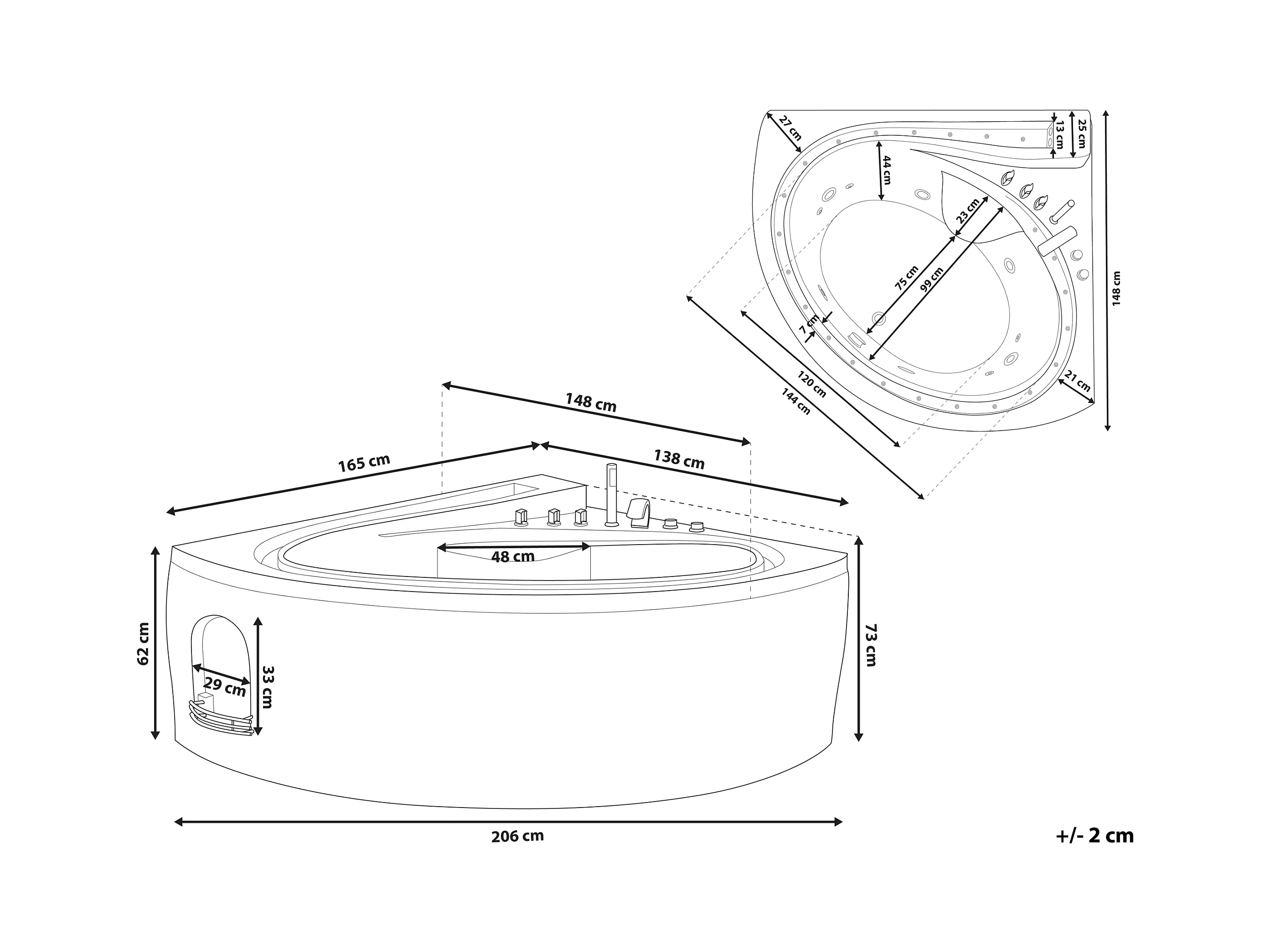 Baignoire d'angle à remous avec LED PELICAN 206 x 165 cm Blanc
