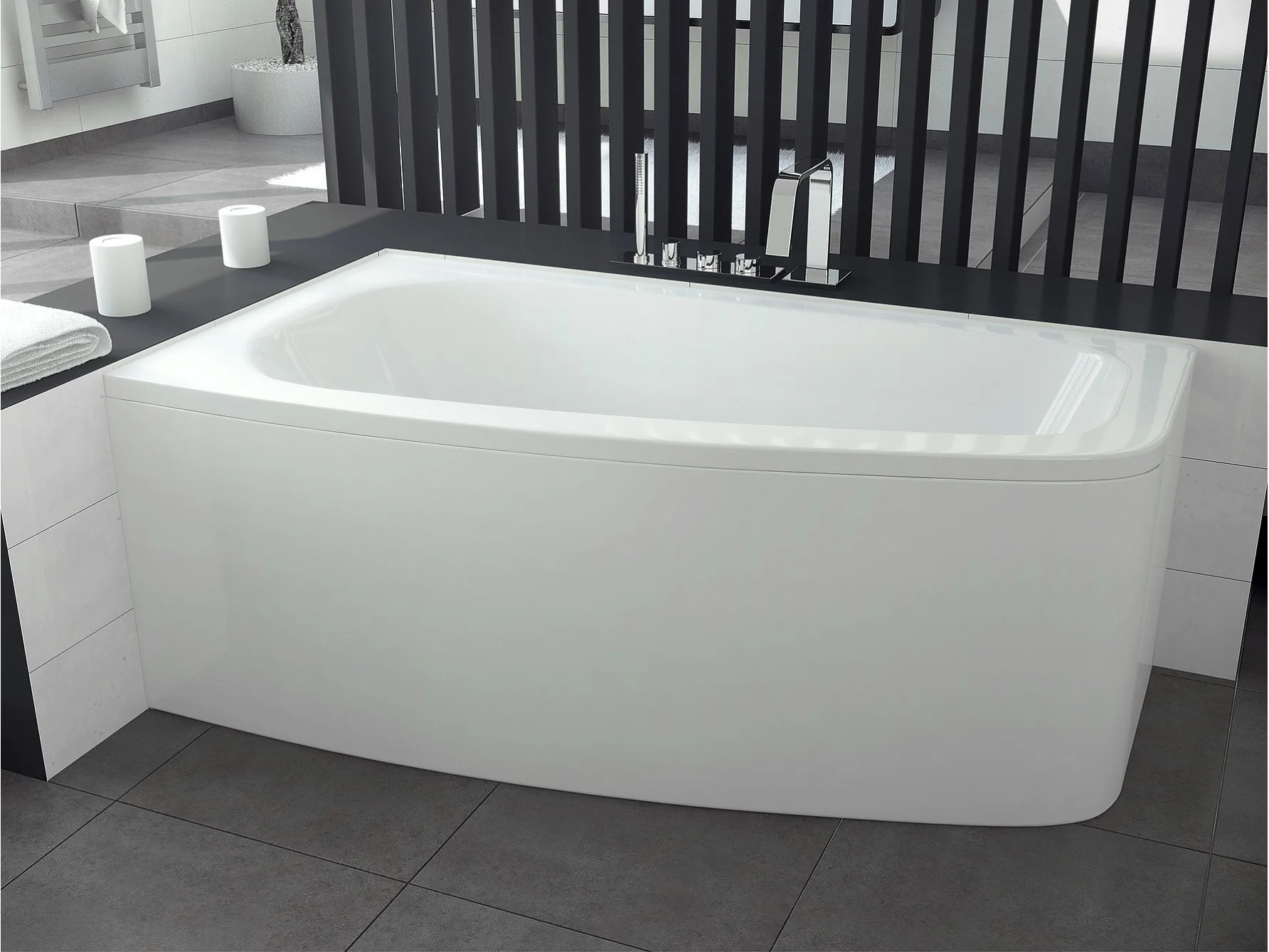 Baignoire d'angle LUNA 150 cm avec tablier - Orientation: Gauche