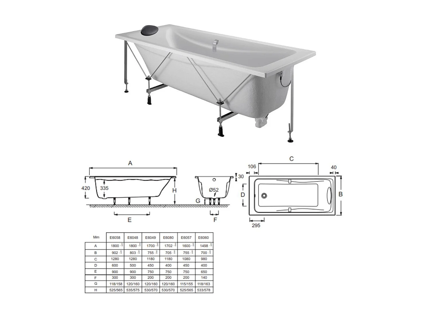 Baignoire droite 150 X 70 JACOB DELAFON Odéon up