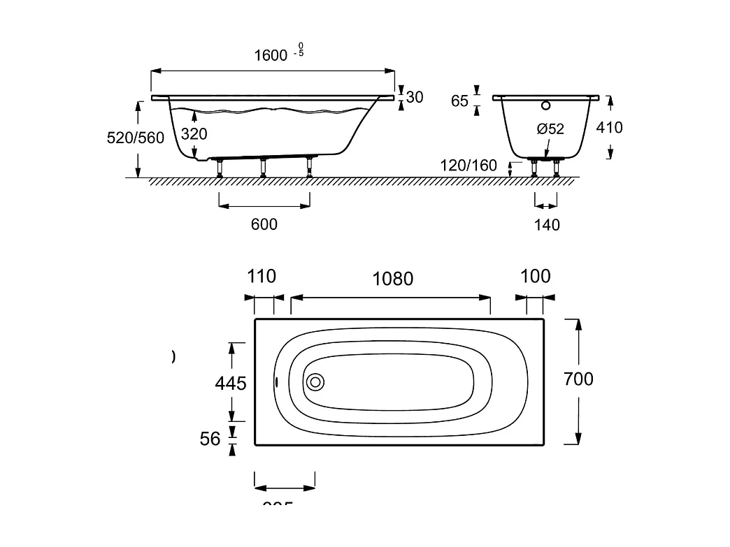 Baignoire droite 160 x 70 JACOB DELAFON Bastille blanc mat