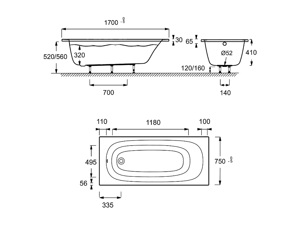 Baignoire droite 170 x 75 JACOB DELAFON Bastille blanc mat