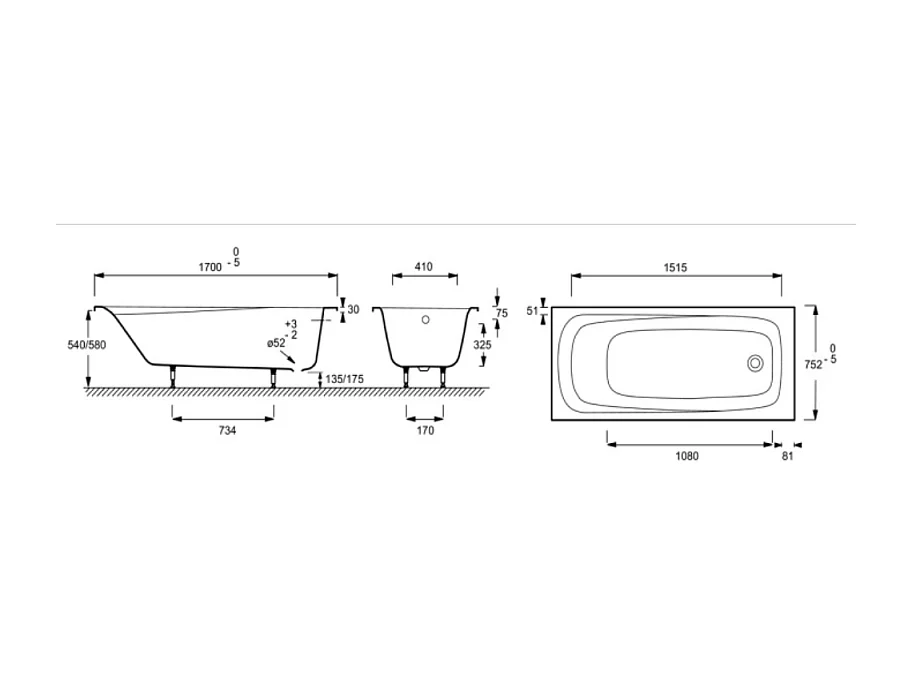 Baignoire droite 170 X 75 JACOB DELAFON Brive