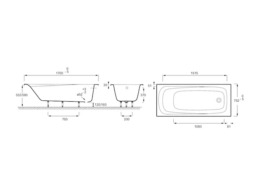 Baignoire droite 170 X 75 JACOB DELAFON Brive en acrylique renforcé + nettoyant