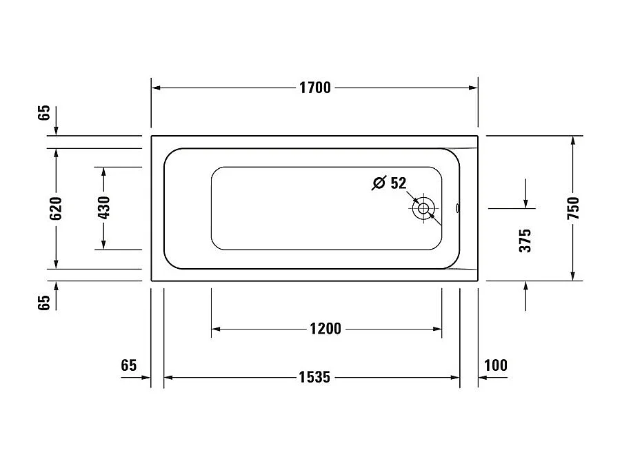 Baignoire droite DURAVIT D-Code 170 x75 cm + Pare bain droit AURYS Mist 1 chromé