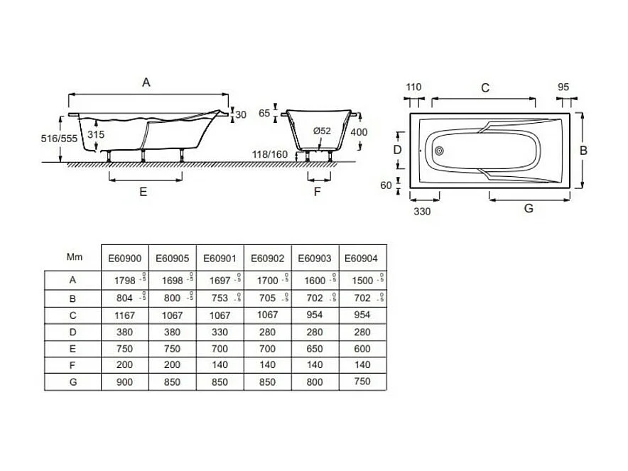 Baignoire droite JACOB DELAFON Corvette confort Acrylique renforcé 170 X 75