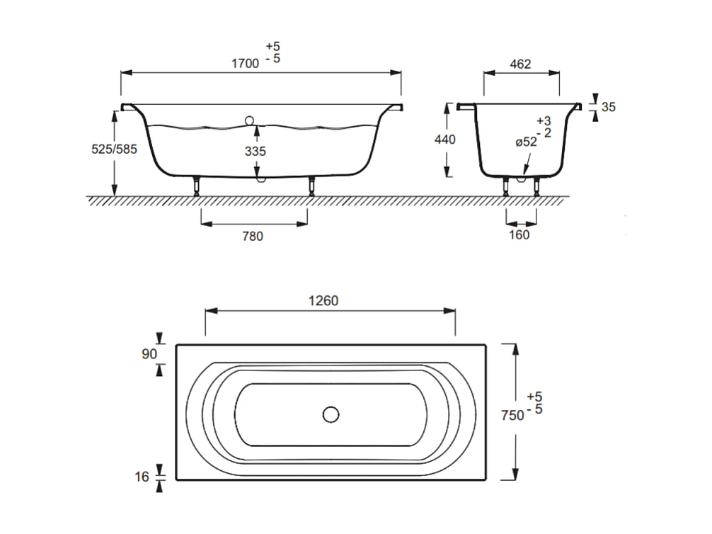 Baignoire droite JACOB DELAFON Elise deux places Acrylique 170 X 75