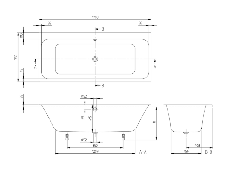 Baignoire droite VILLEROY & BOCH Architectura avec pieds 170 x 75 cm Blanc + Pare bain droite AURYS Mist 1 chromé