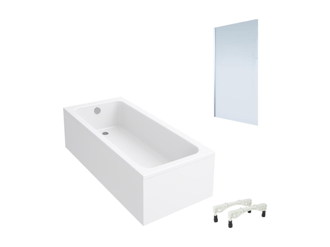 Baignoire droite VILLEROY & BOCH Architectura avec pieds acrylique 170 x 70 cm + Pare bain gauche AURYS Mist 1 chromé