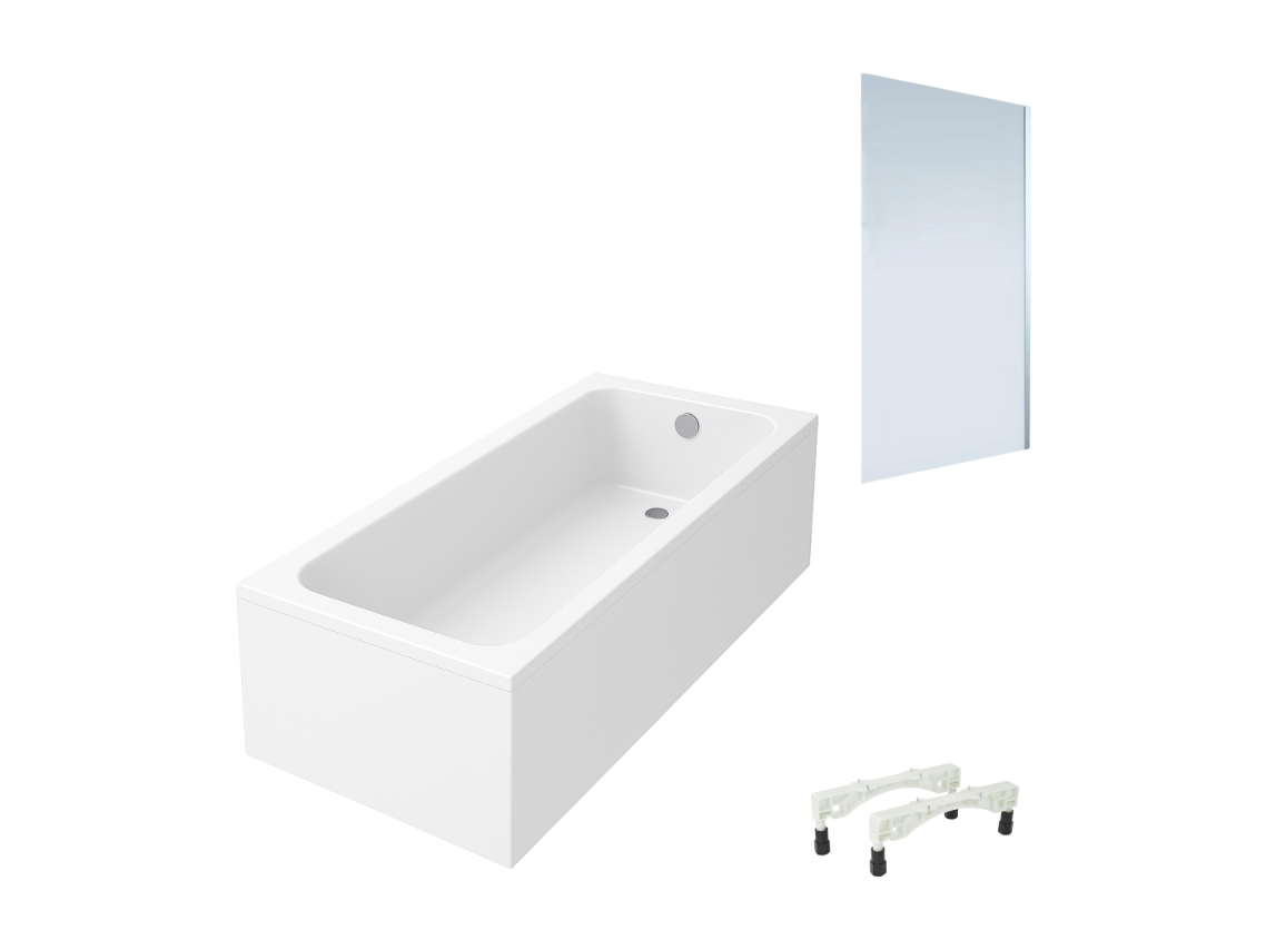 Baignoire droite VILLEROY & BOCH Architectura avec pieds acrylique 170 x 75 cm + Pare bain droite AURYS Mist 1 chromé