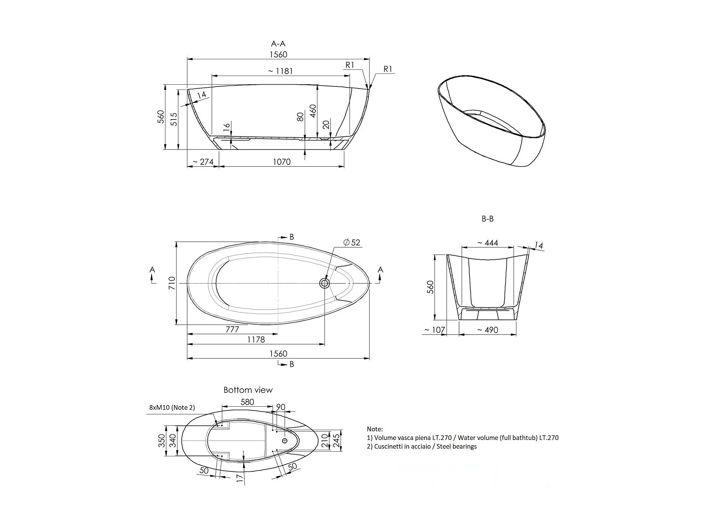 Baignoire En Marbre Recomposé Blanc 150X70x56 Cm | Rachele