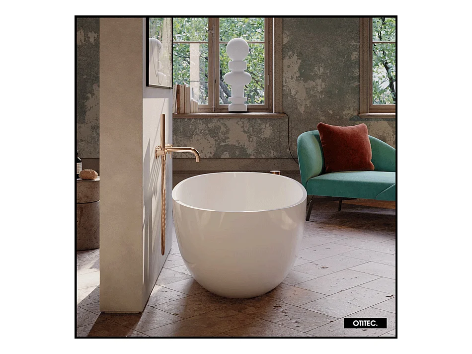 Baignoire Îlot - 148 x 75 cm - SHELL - BLANC BRILLANT - avec SIPHON INCLUS