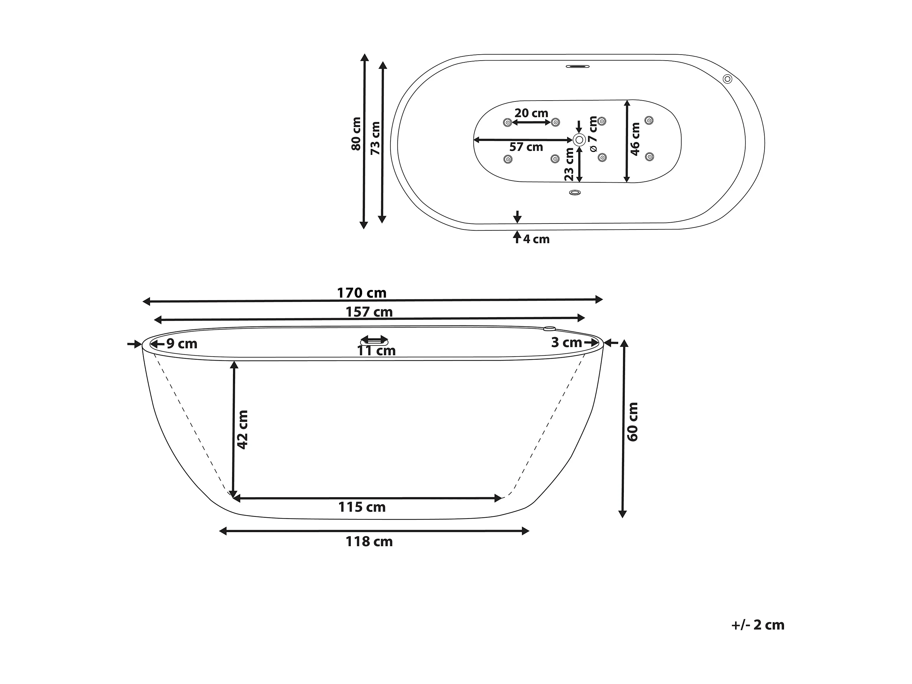 Baignoire îlot noire 170 x 80 cm avec LED NEVIS III