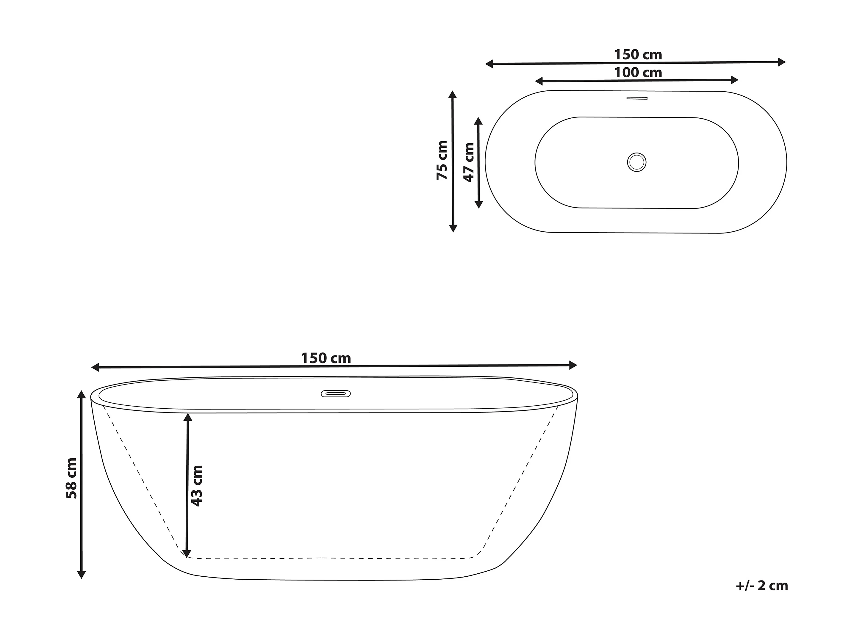 Baignoire îlot CARRERA 150 x 75 cm Blanc