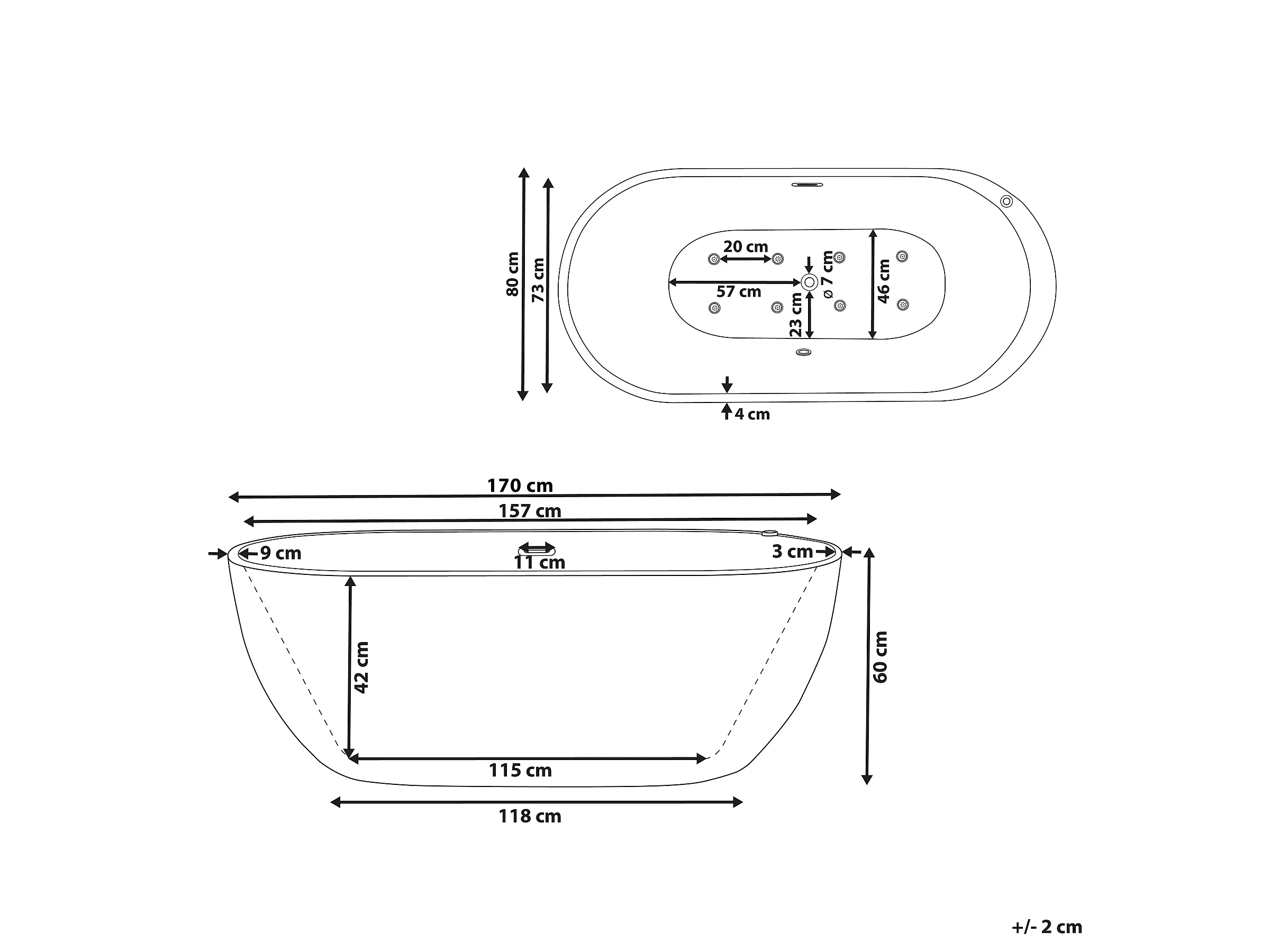 Baignoire îlot blanche 170 x 80 cm avec LED NEVIS III