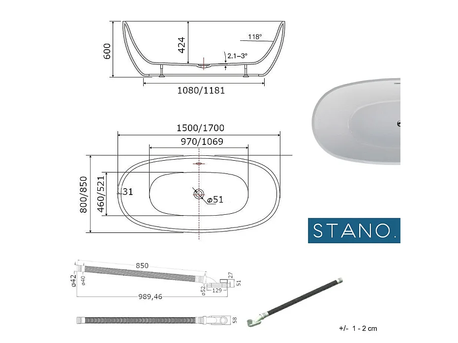 Baignoire îlot design ovale DENVER blanche 170 cm