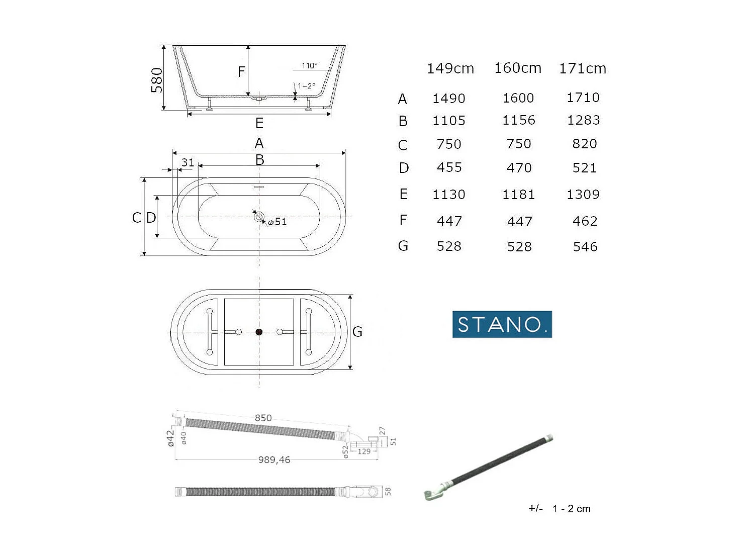 Baignoire îlot design ovale FINDLAY blanche 160 cm