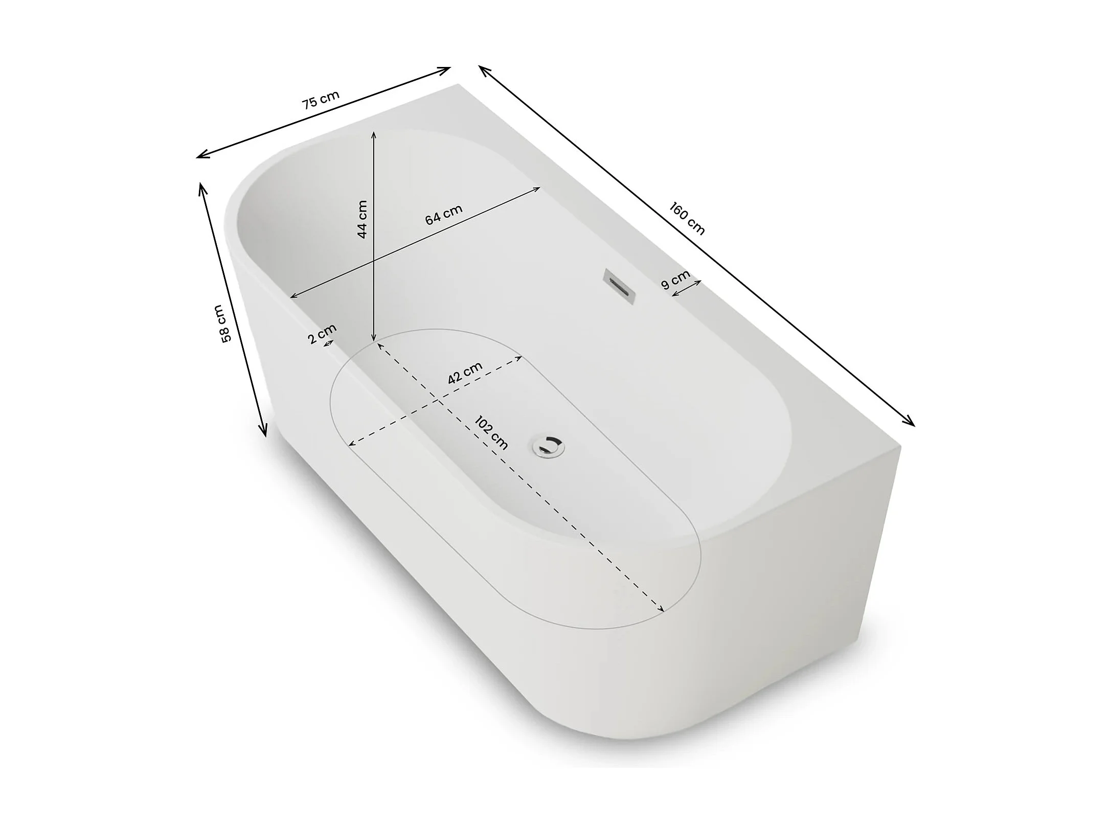 Baignoire Ilot Naos 160 blanche 160 x75 x58 cm, by SPALINA
