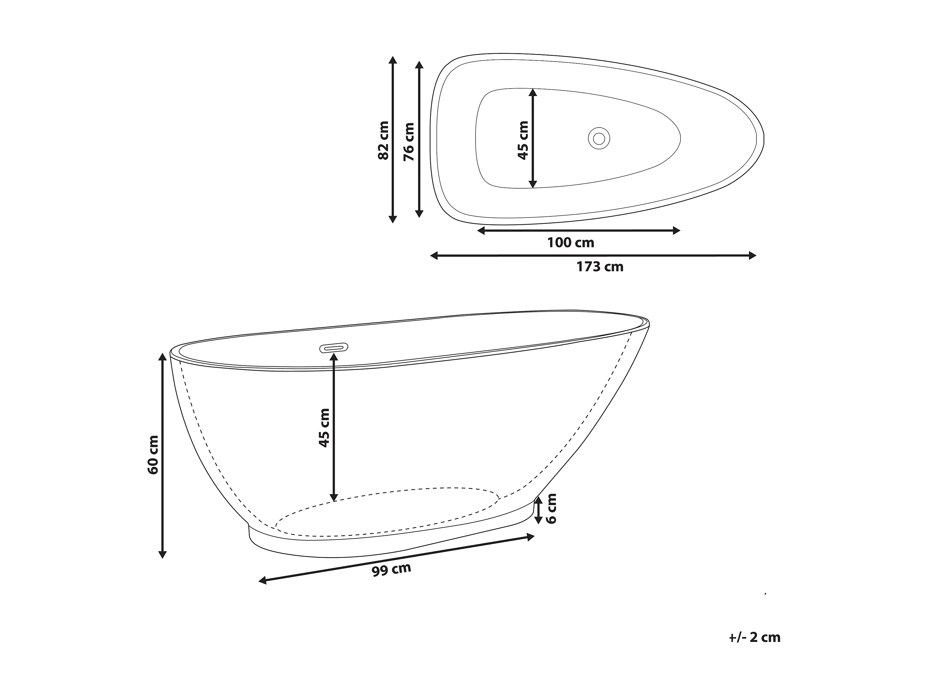 Baignoire îlot GUIANA 173 x 82 cm Noir/blanc