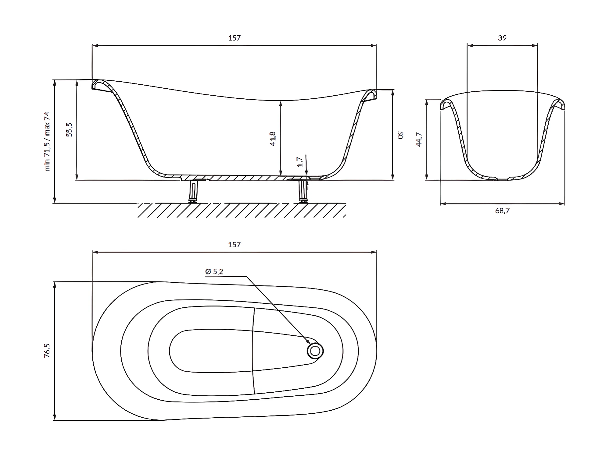 baignoire îlot OMNIRES ATENA M+ 157X77 CM couleur : blanc finition : brillant