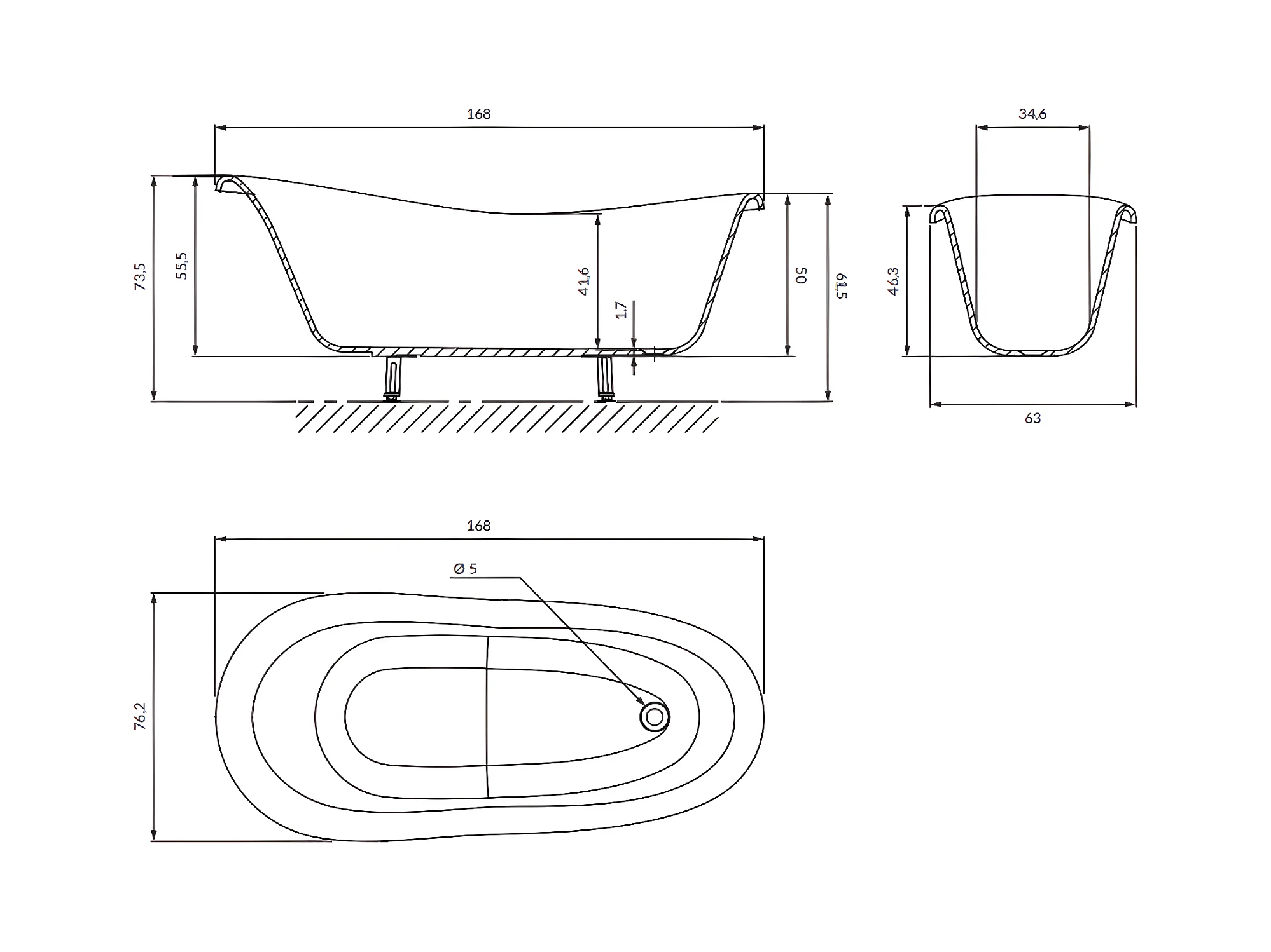 baignoire îlot OMNIRES ATENA M+ 168X76 CM couleur : blanc/noir finition : brillant