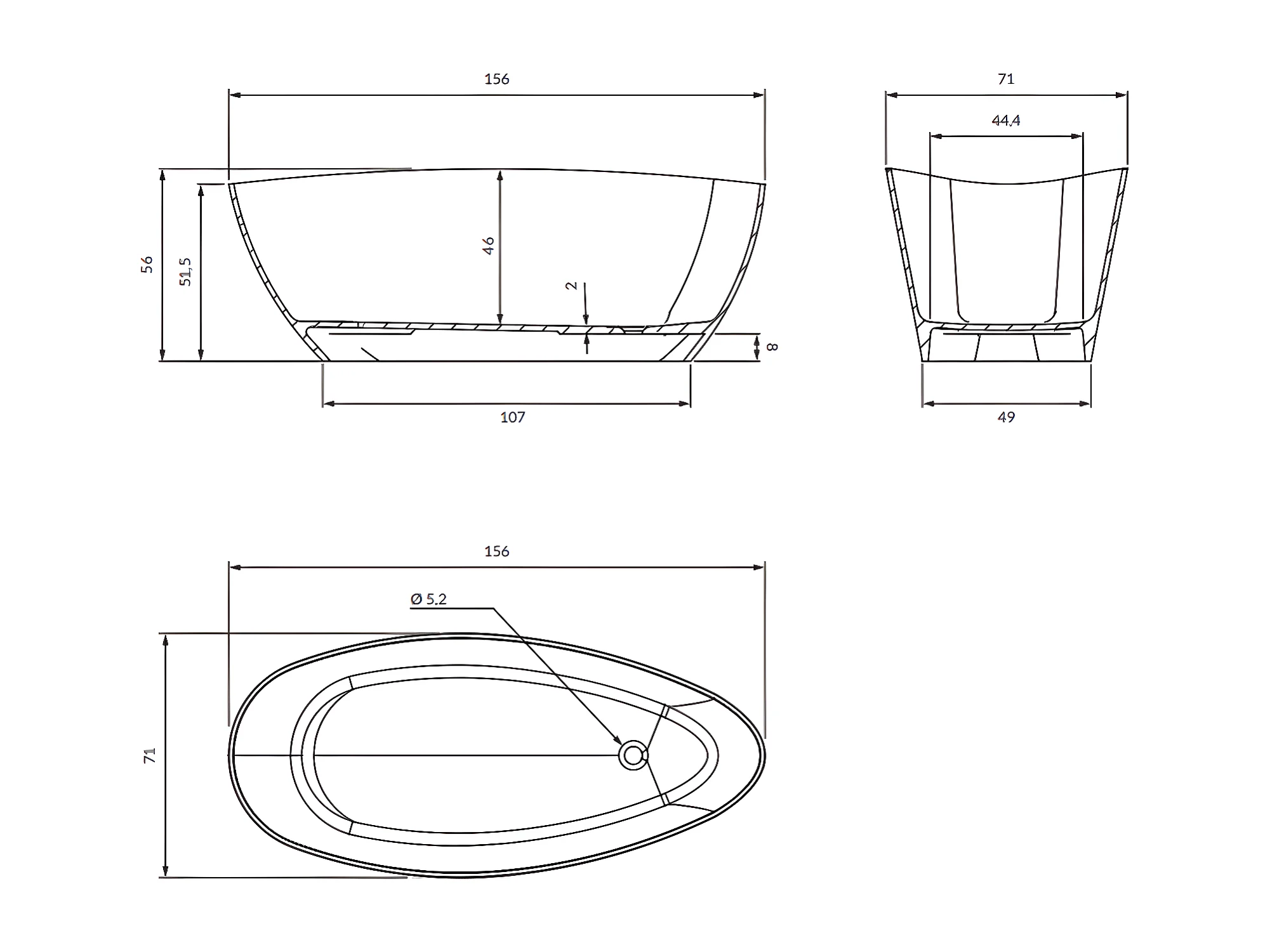 baignoire îlot OMNIRES BARCELONA M+ 156X71 CM couleur : blanc finition : brillant