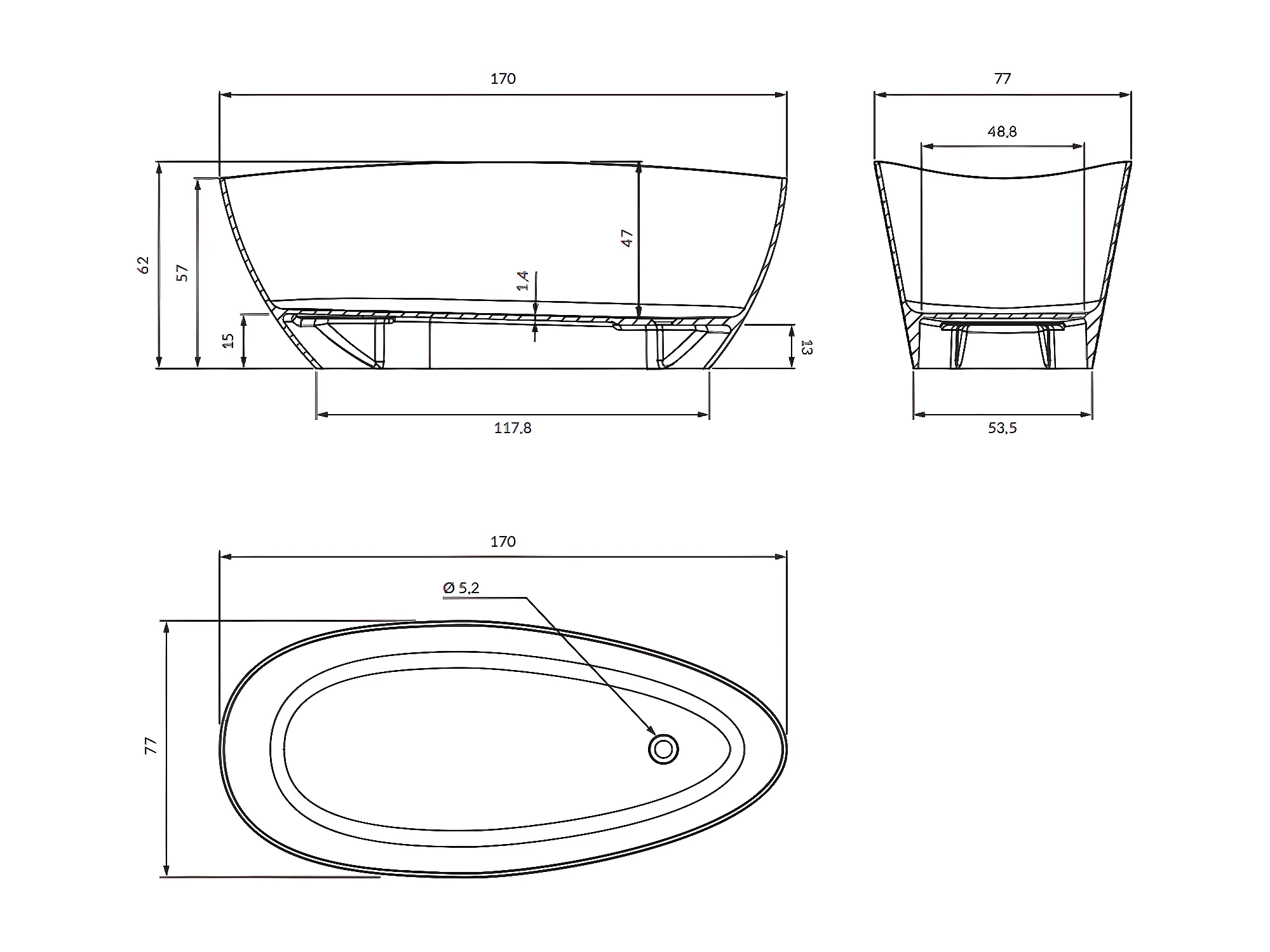 baignoire îlot OMNIRES BARCELONA M+ 170X77 CM couleur : blanc finition : mat