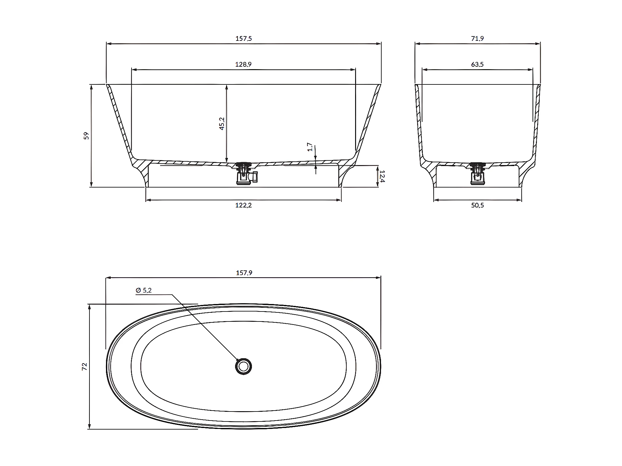 baignoire îlot OMNIRES NEO M+ 158X72 CM , couleur : blanc finition : brillant bonde et siphon inclus