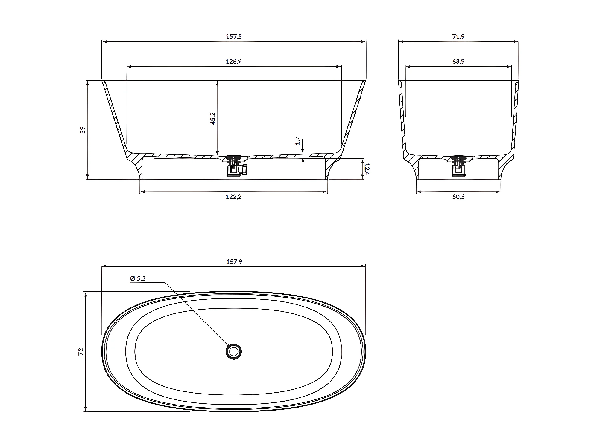 baignoire îlot OMNIRES NEO M+ 158X72 CM , couleur : blanc finition : mat bonde et siphon inclus