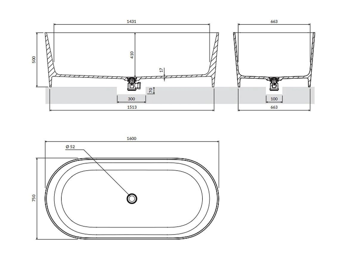 baignoire îlot OMNIRES OVO M+ 160X75 CM couleur : rose finition : mat bonde et siphon inclus
