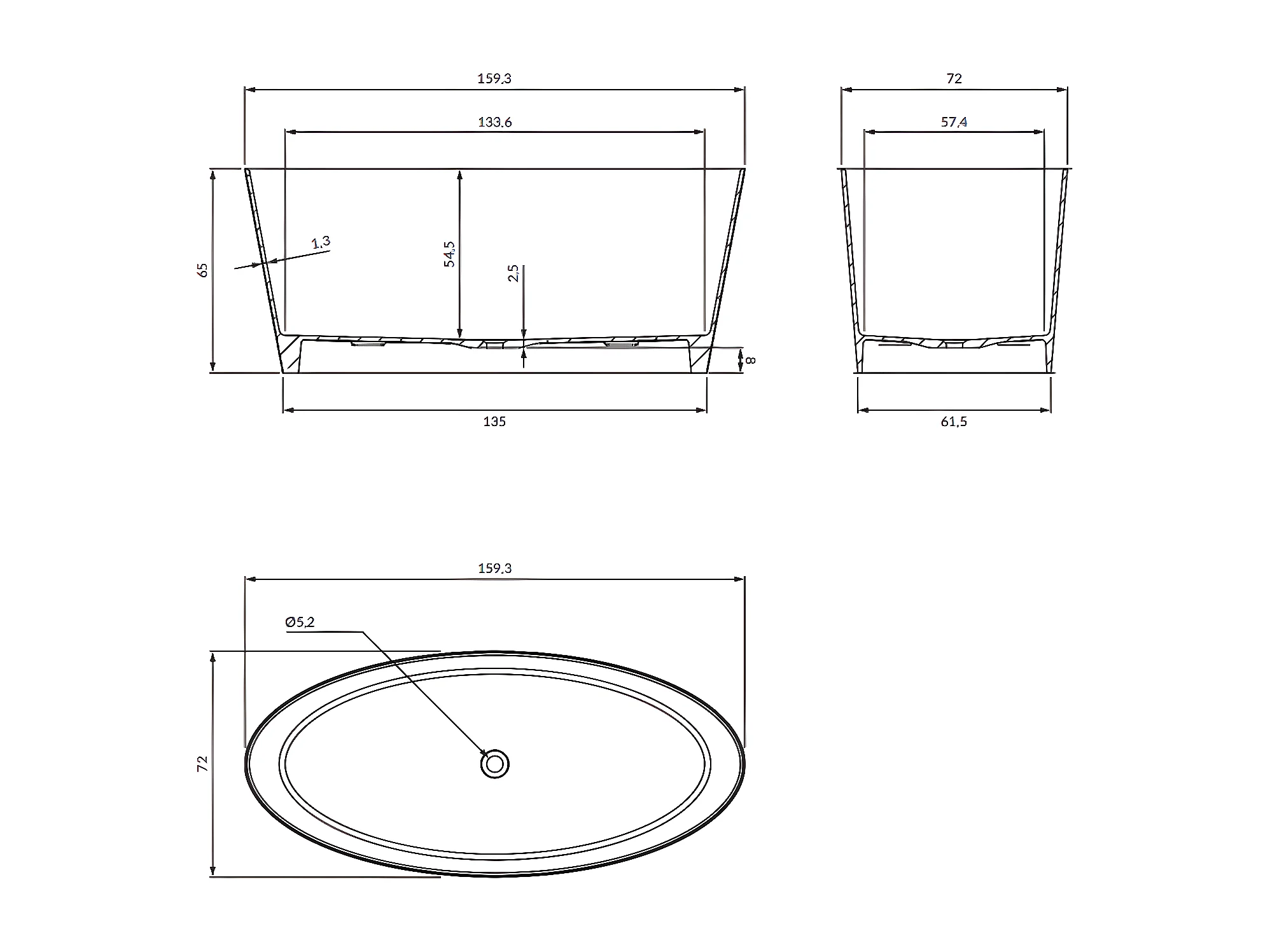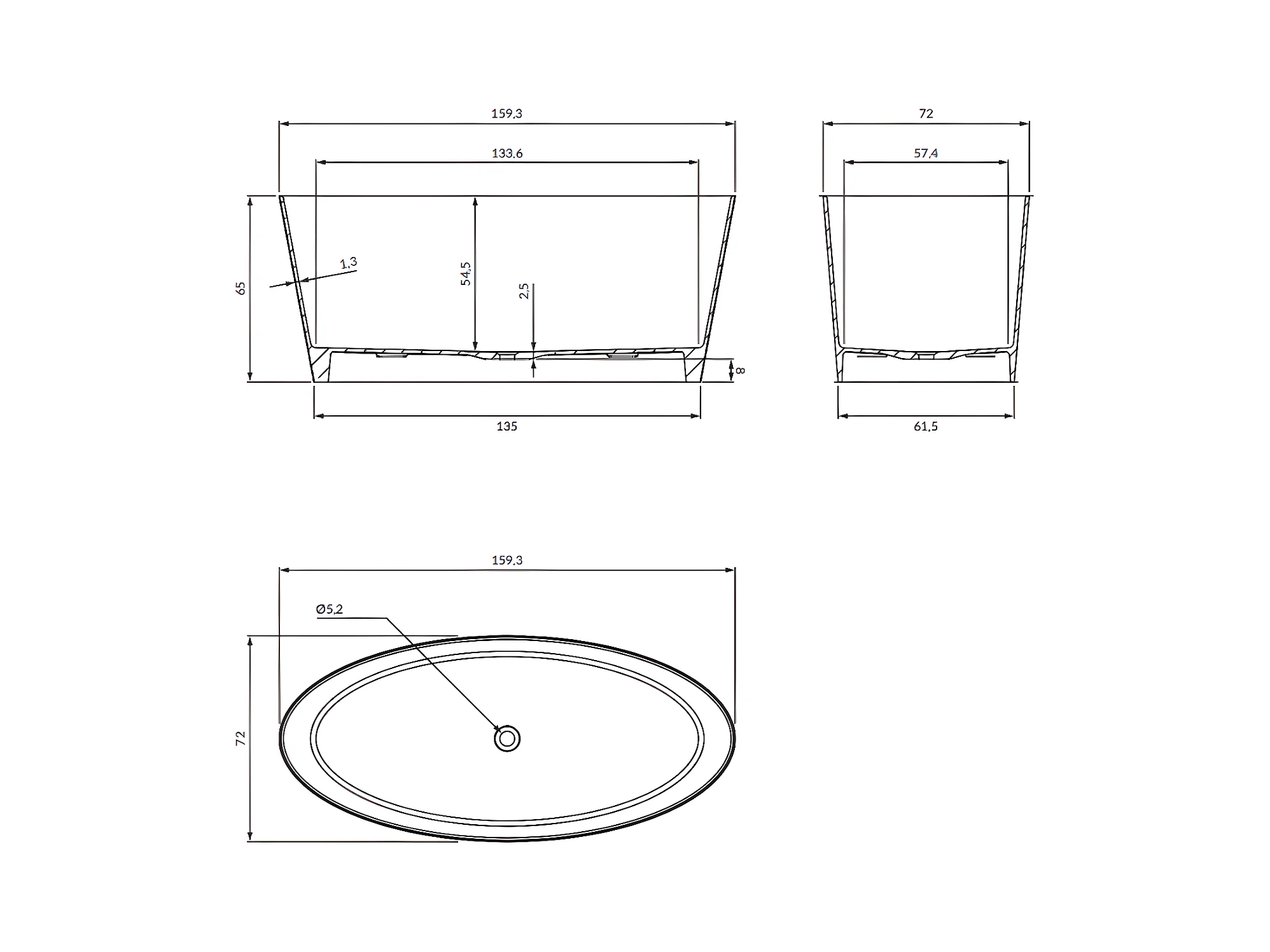 baignoire îlot OMNIRES ROMA M+ 159X72 CM couleur : blanc finition : brillant