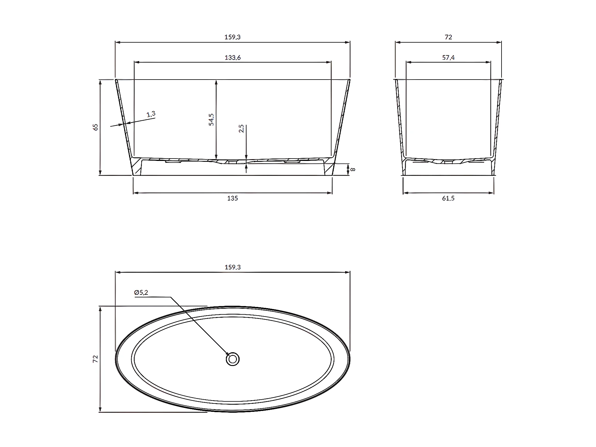 baignoire îlot OMNIRES ROMA M+ 159X72 CM couleur : blanc finition : brillant