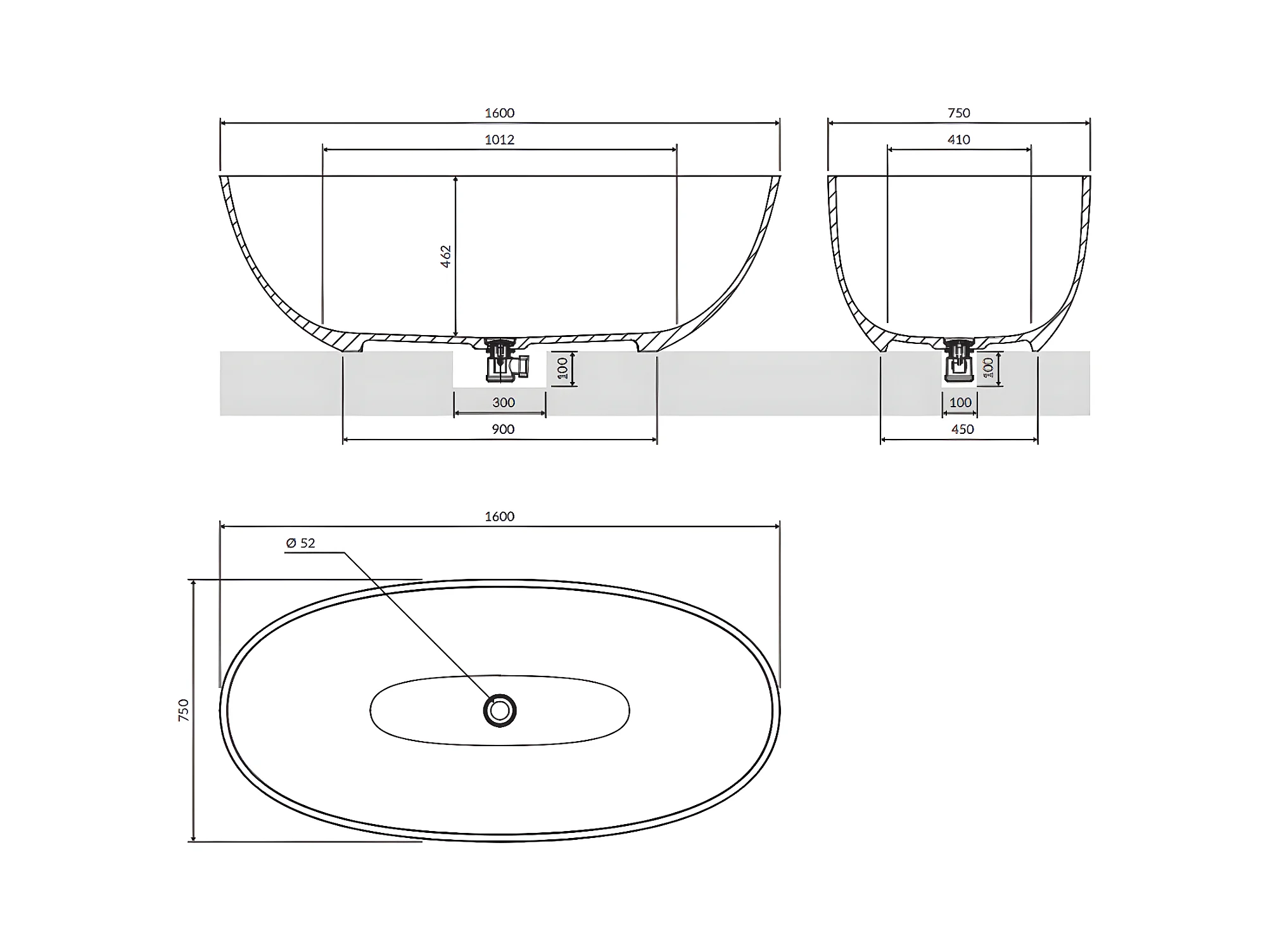 baignoire îlot OMNIRES SHELL M+ 160X75 CM couleur : noir finition : mat bonde et siphon inclus