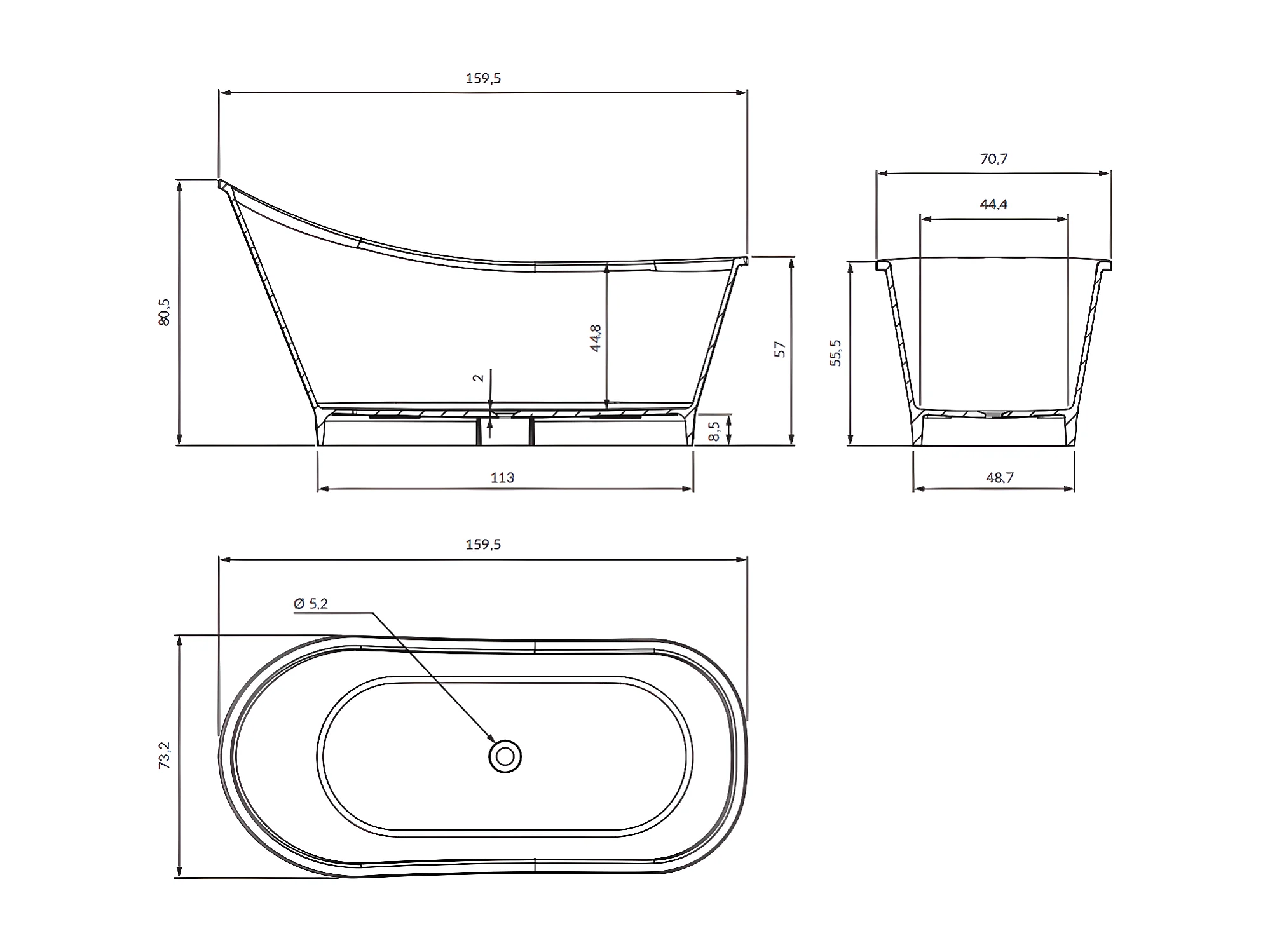baignoire îlot OMNIRES VENEZIA M+ 160X73 CM couleur : noir et blanc finition : brillant