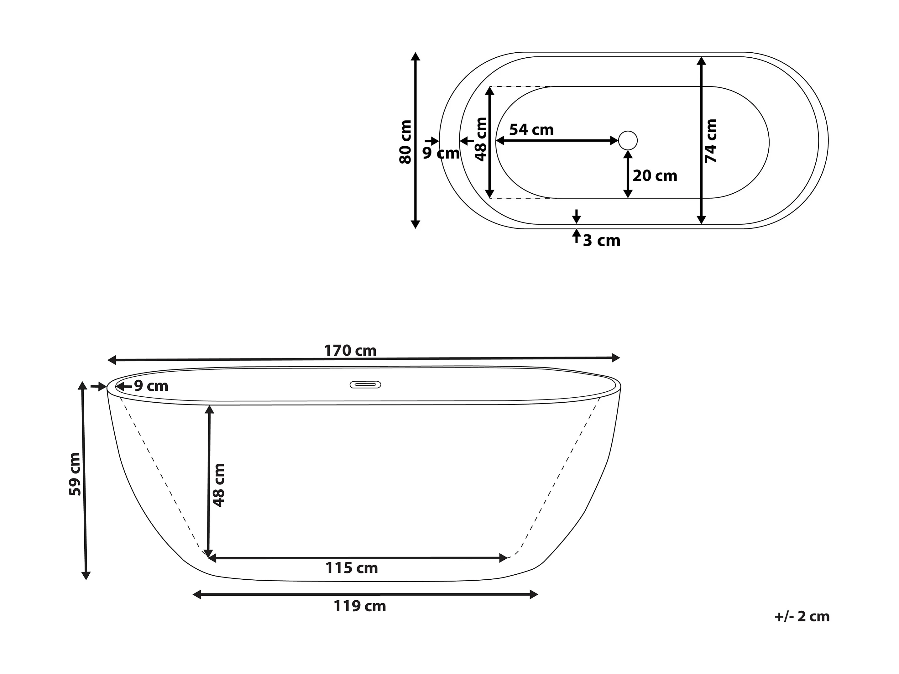 Baignoire îlot NEVIS 170 x 80 cm Bleu paon