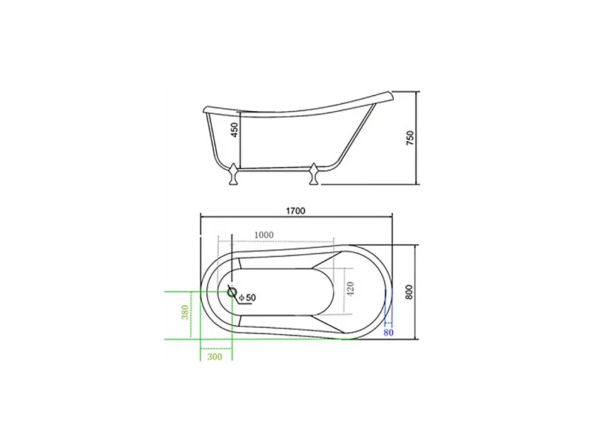Baignoire ilôt retrò 170 x 80 cm avec pieds Or – Marigold