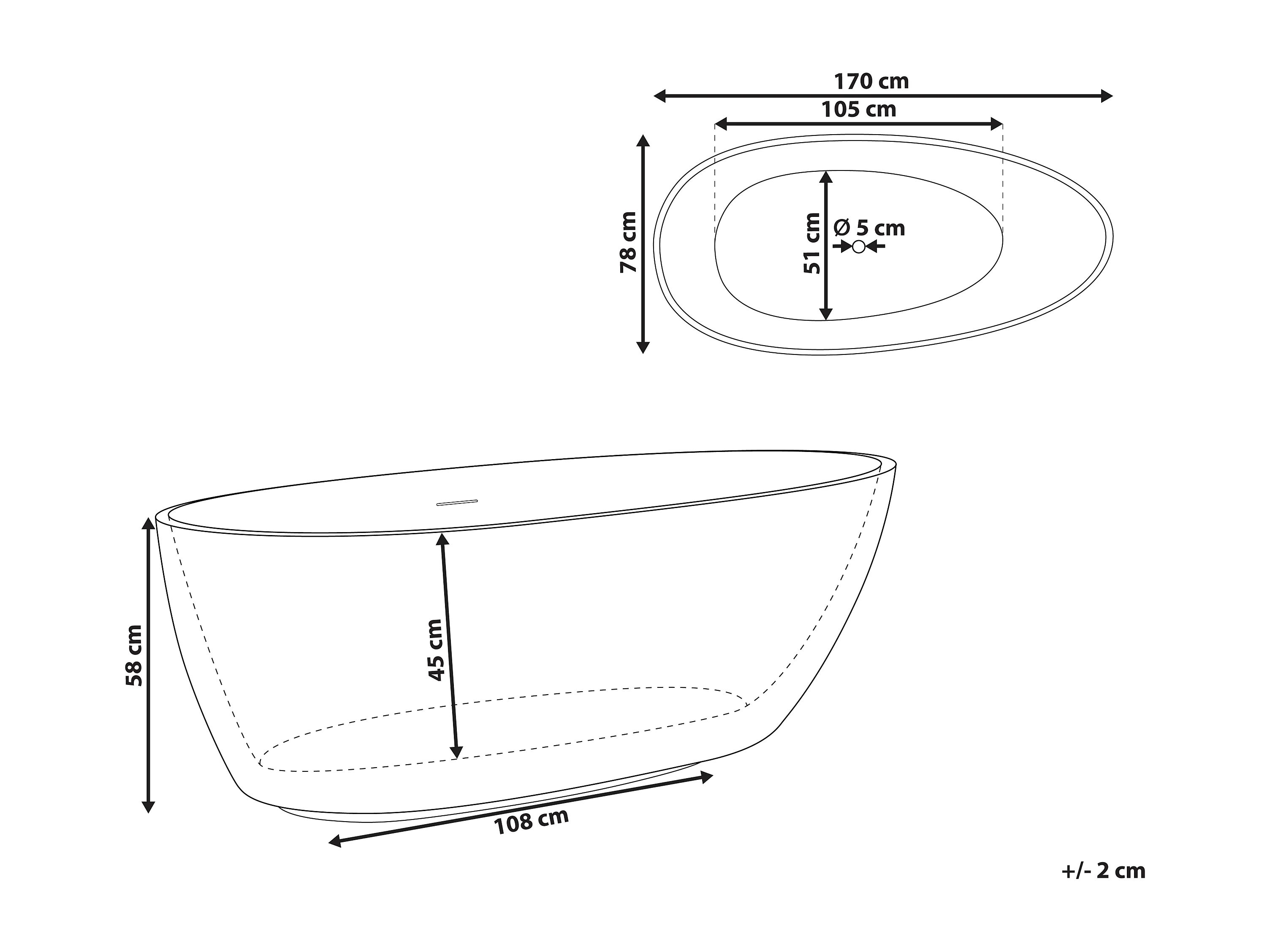 Baignoire îlot TEFE 170 x 78 cm Noir